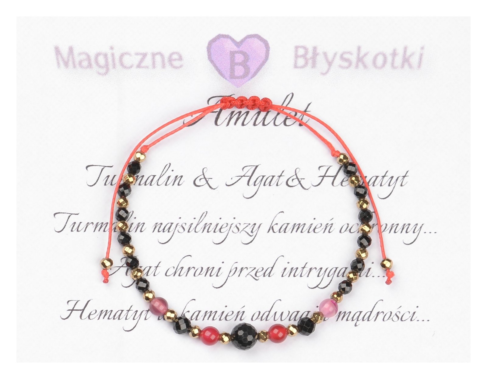 Bransoletka z kamieniami: TURMALIN + AGAT + HEMATYT.