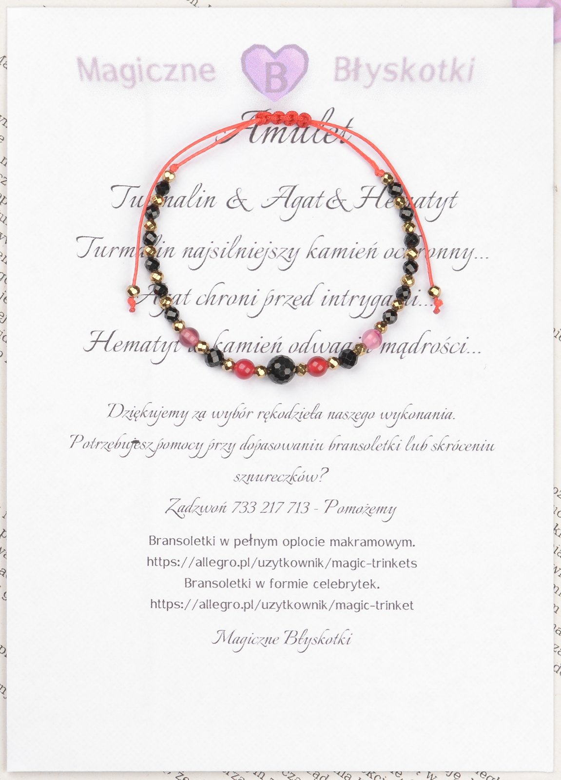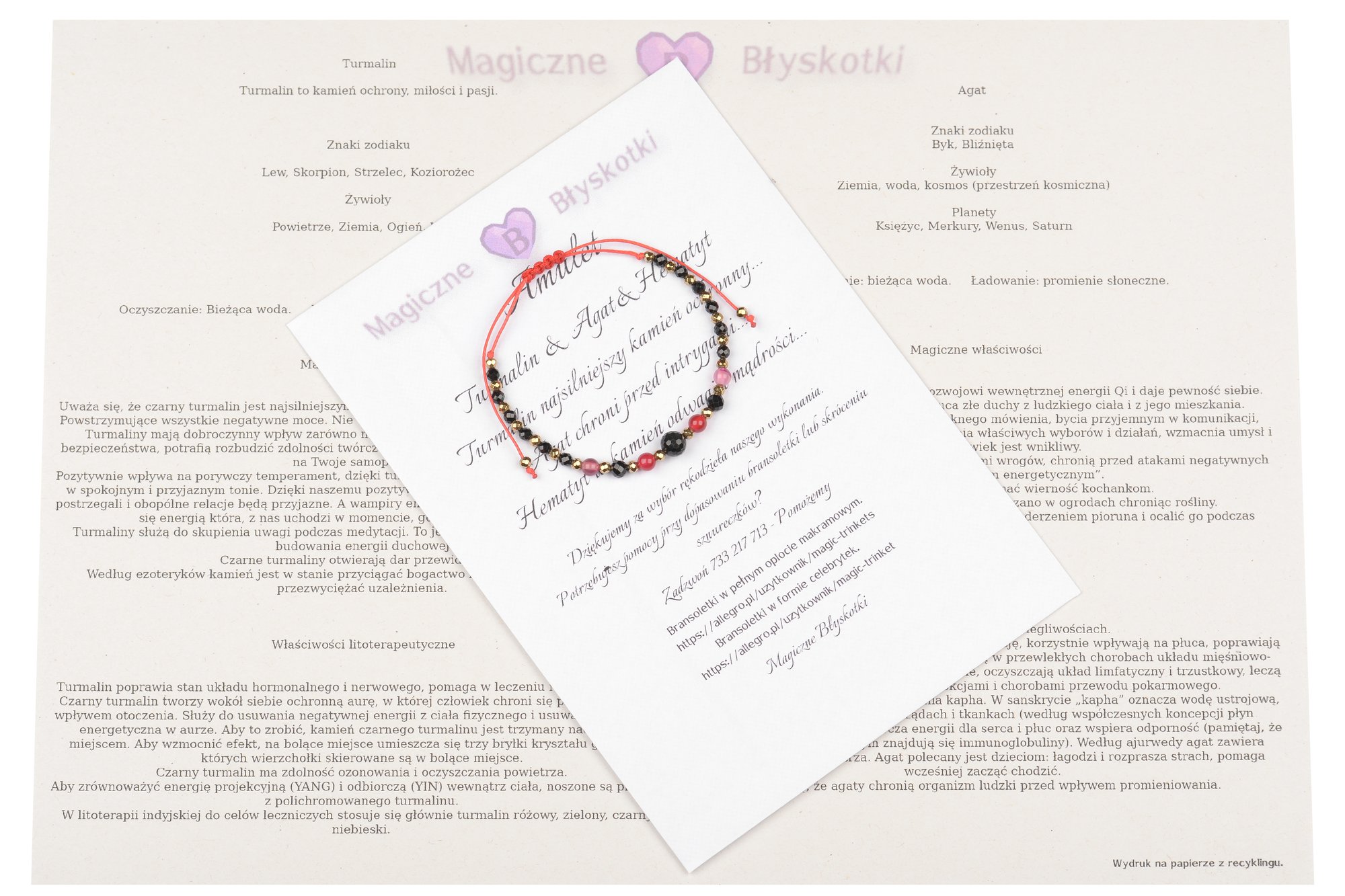 W komplecie otrzymujesz: bransoletkę, opis kamieni i kopertę jako opakowanie, co czyni ten zestaw unikalnym upominkiem.