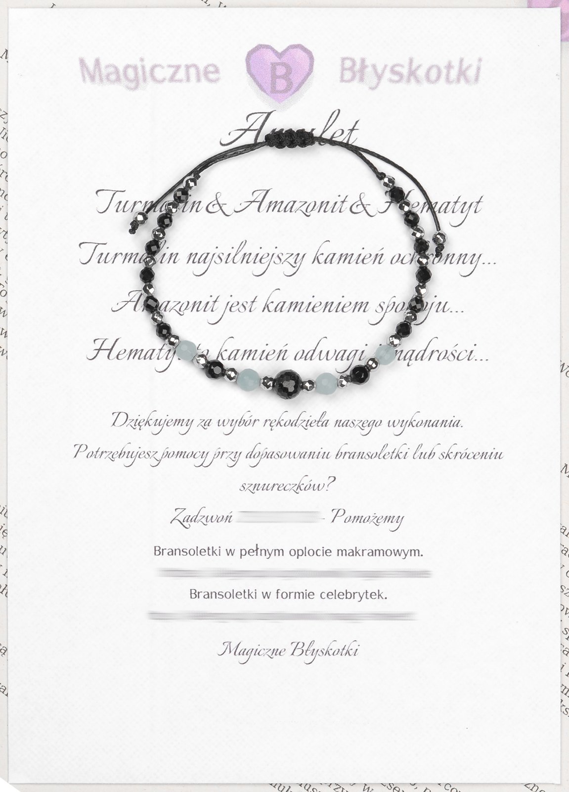 Bransoletka z kamieniami: TURMALIN + AMAZONIT + HEMATYT.
