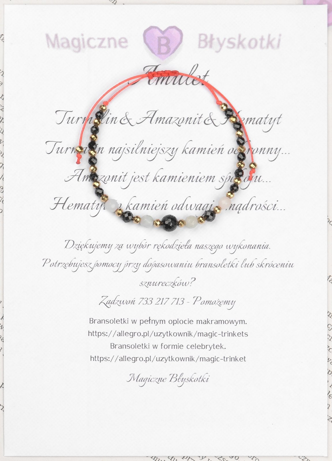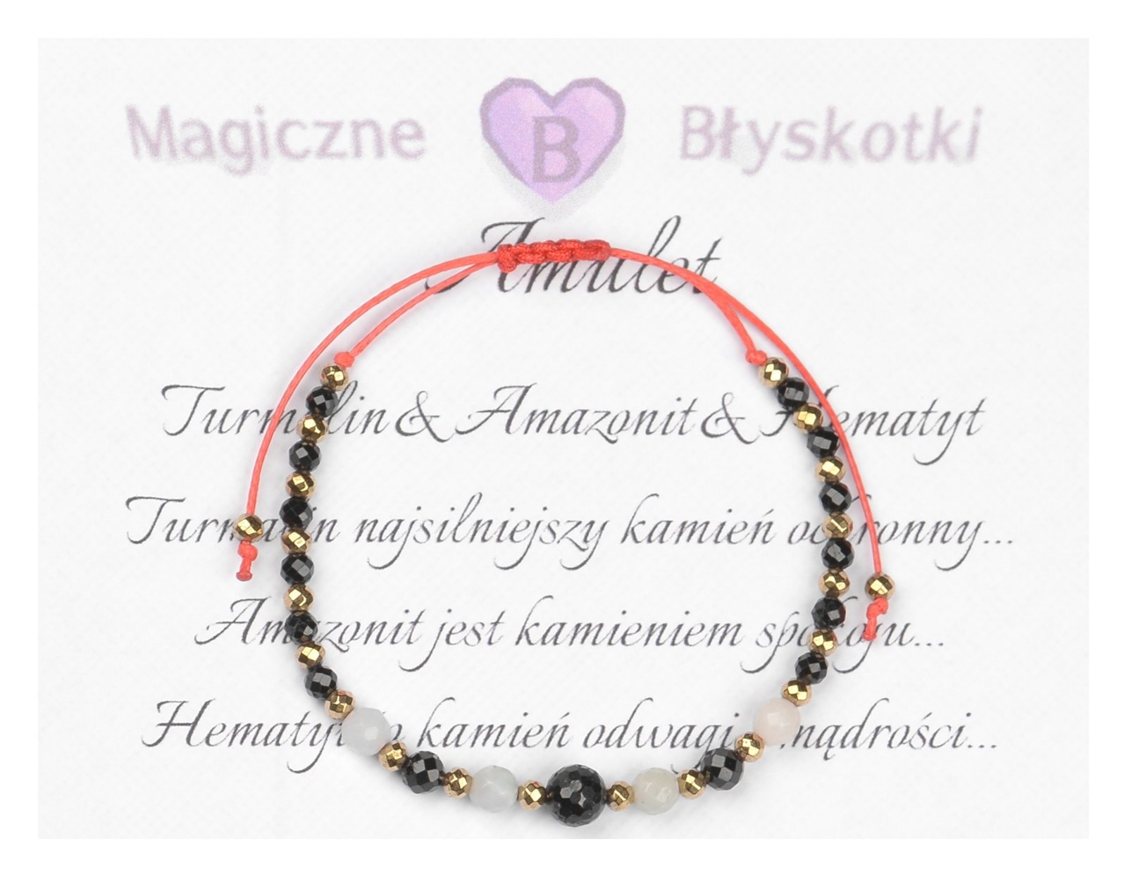 Bransoletka z kamieniami: TURMALIN + AMAZONIT + HEMATYT.