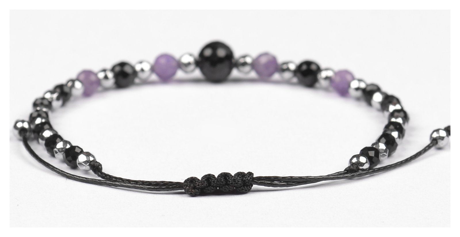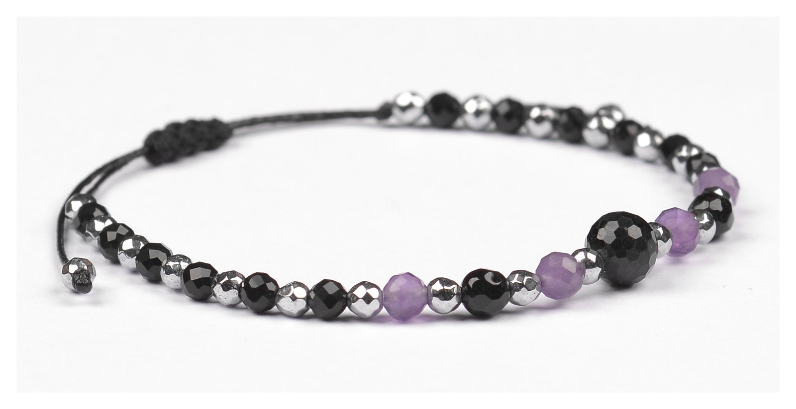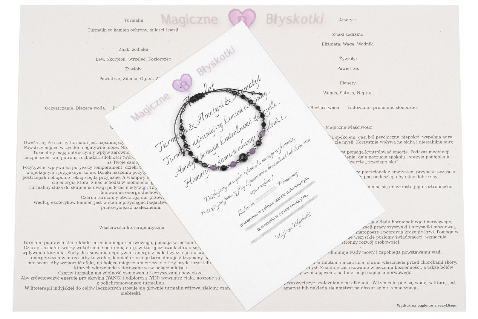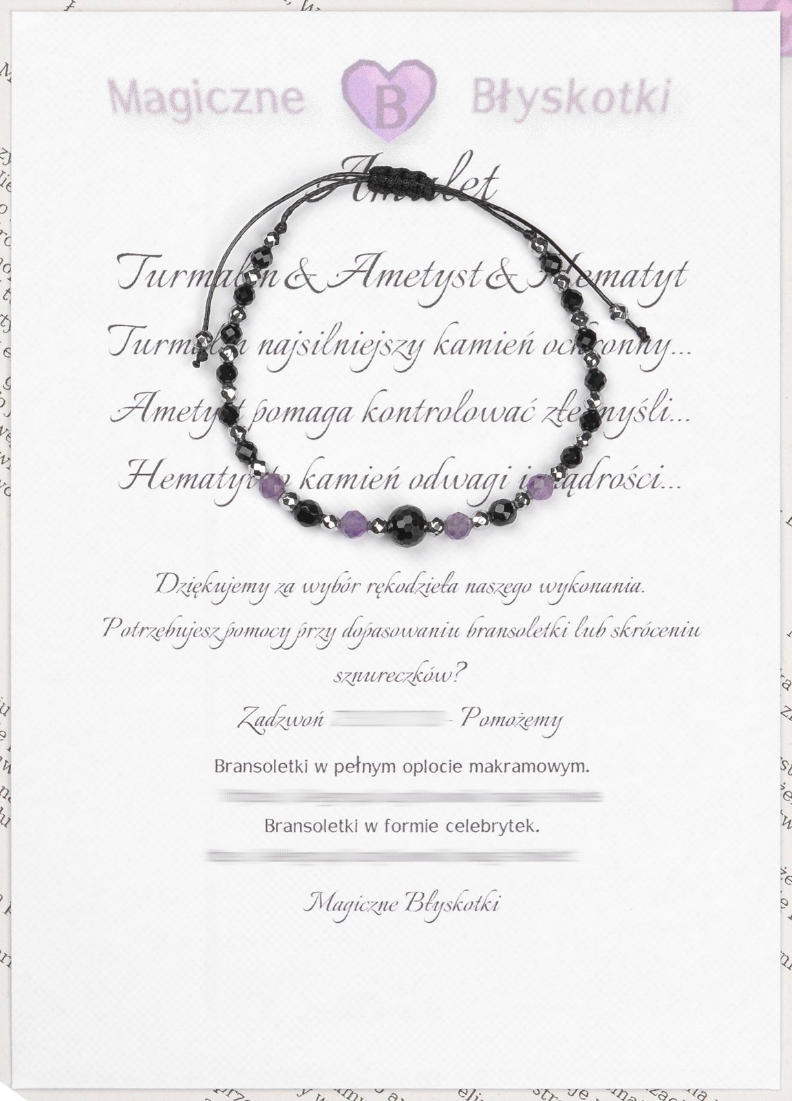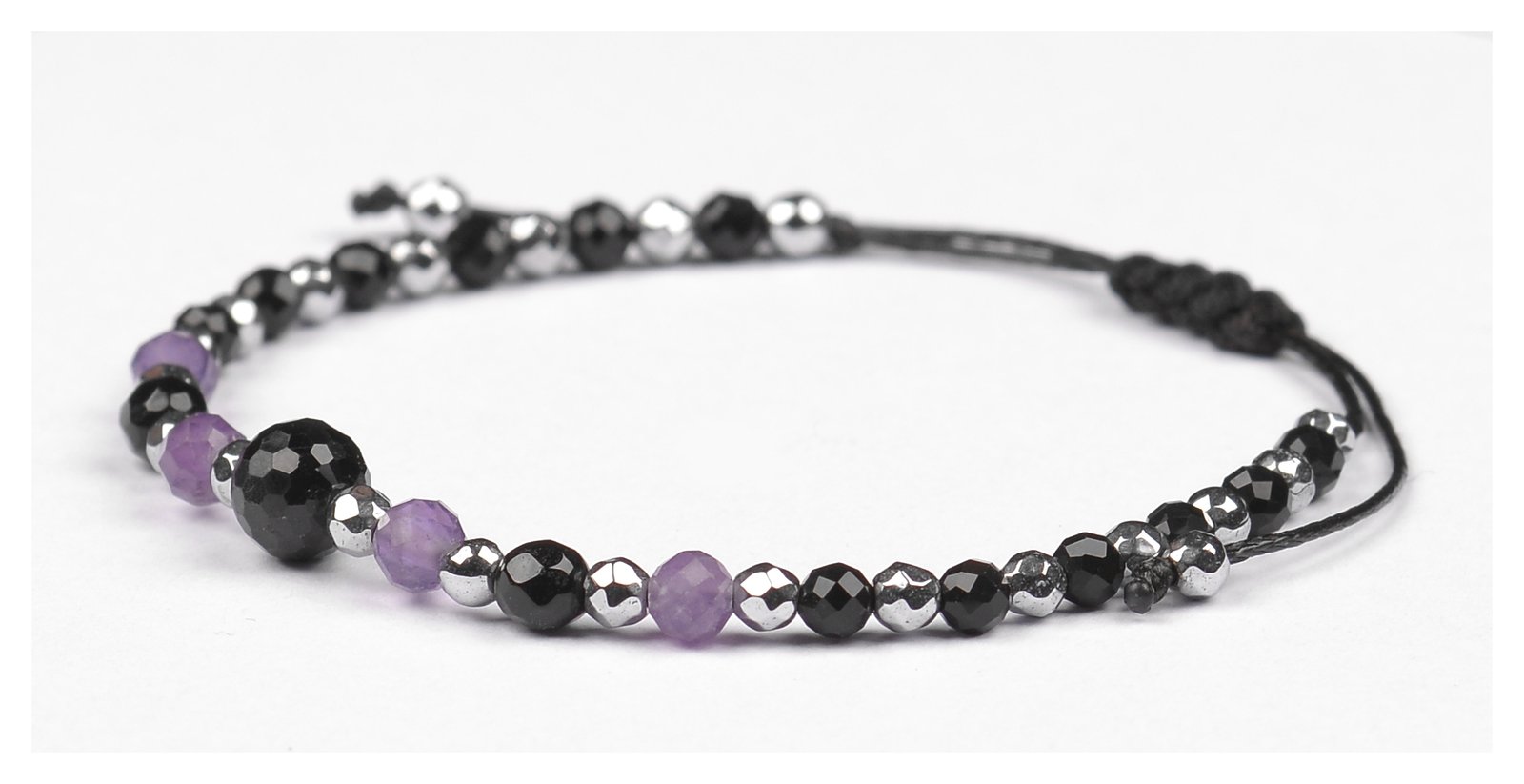 Bransoletka z kamieniami: TURMALIN + AMETYST + HEMATYT.