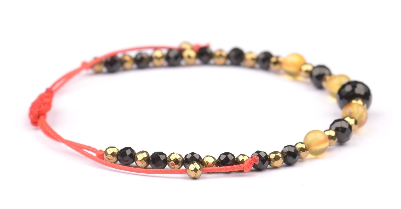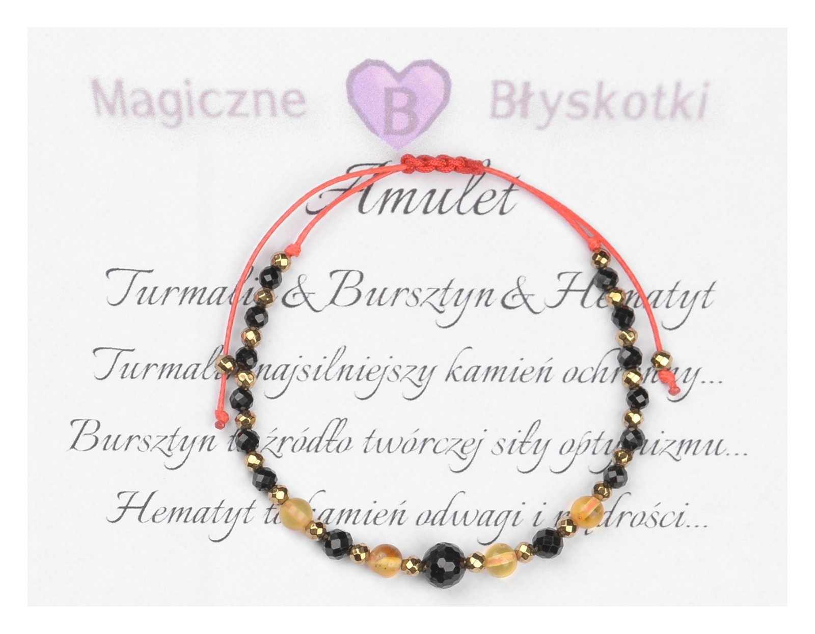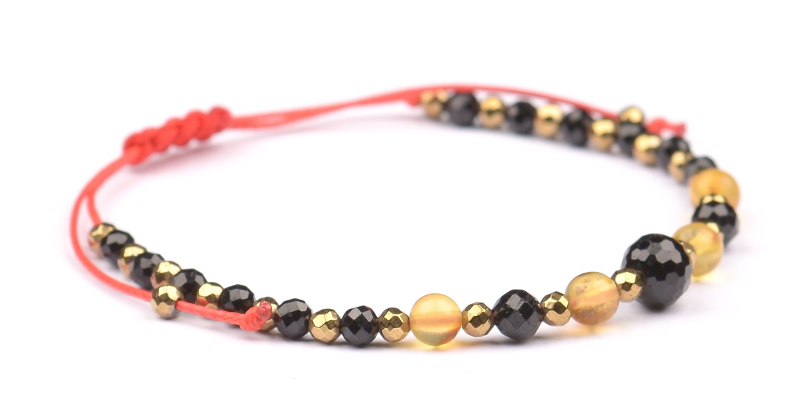Bransoletka z kamieniami: TURMALIN + BURSZTYN + HEMATYT.