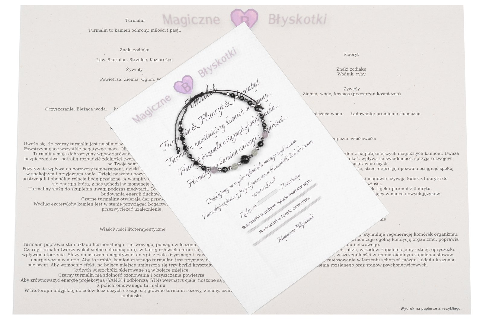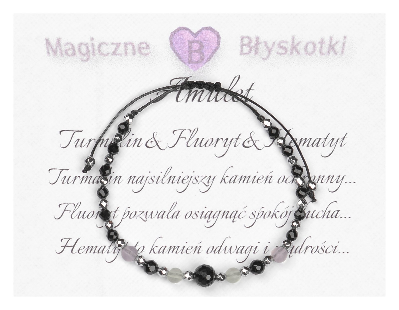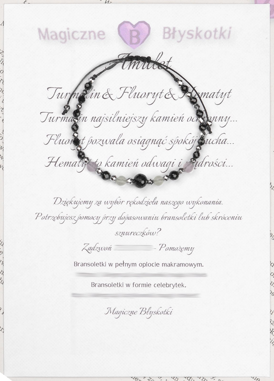 Bransoletka z kamieniami: TURMALIN + FLUORYT + HEMATYT.