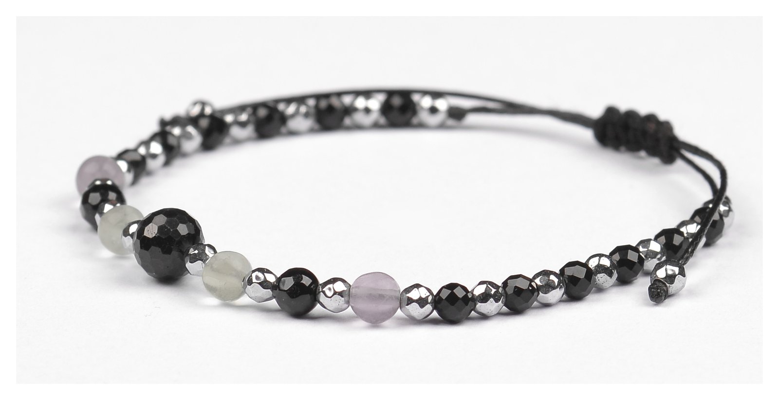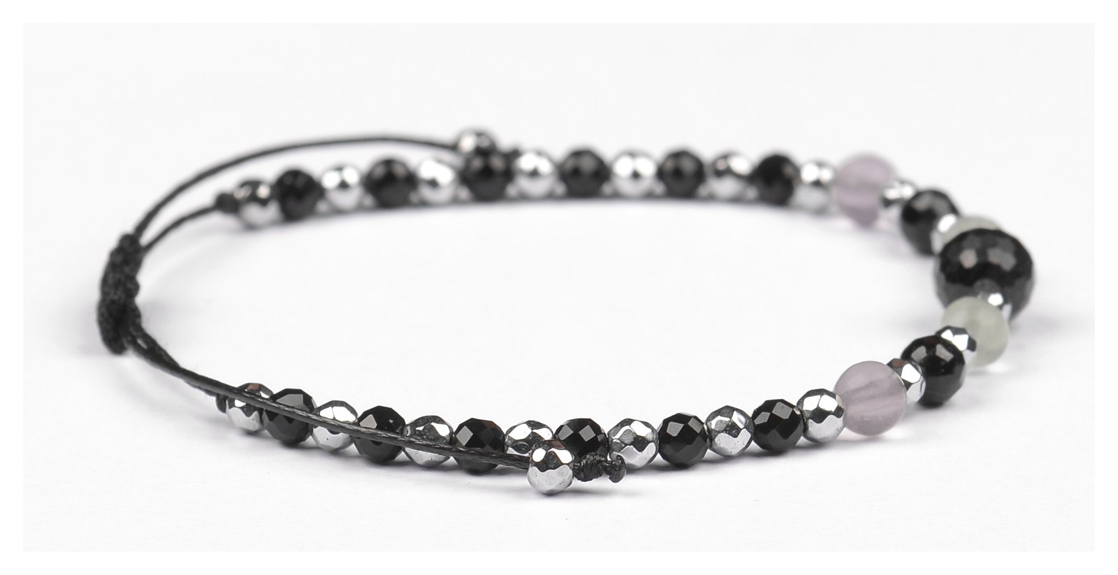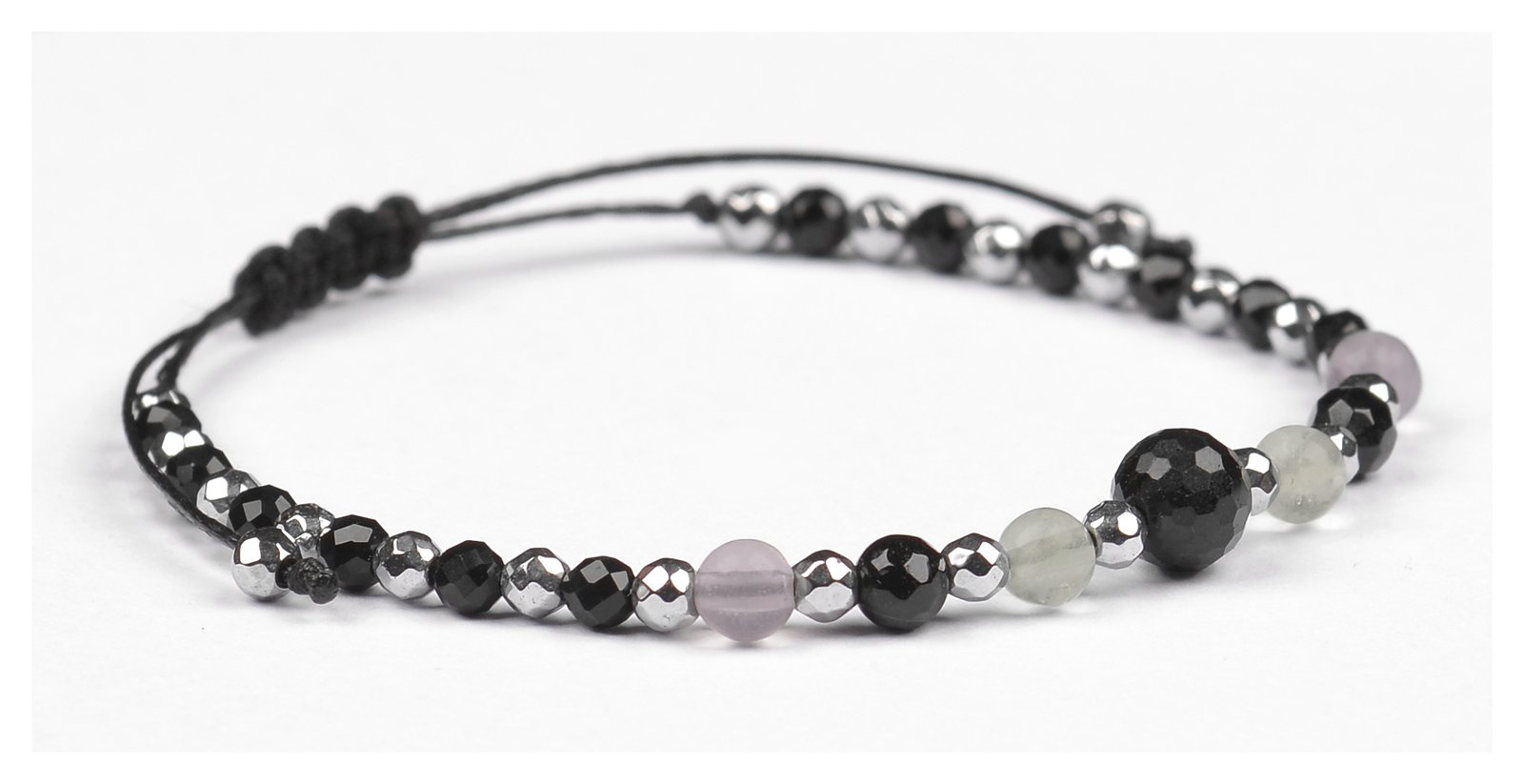 Bransoletka z kamieniami: TURMALIN + FLUORYT + HEMATYT.