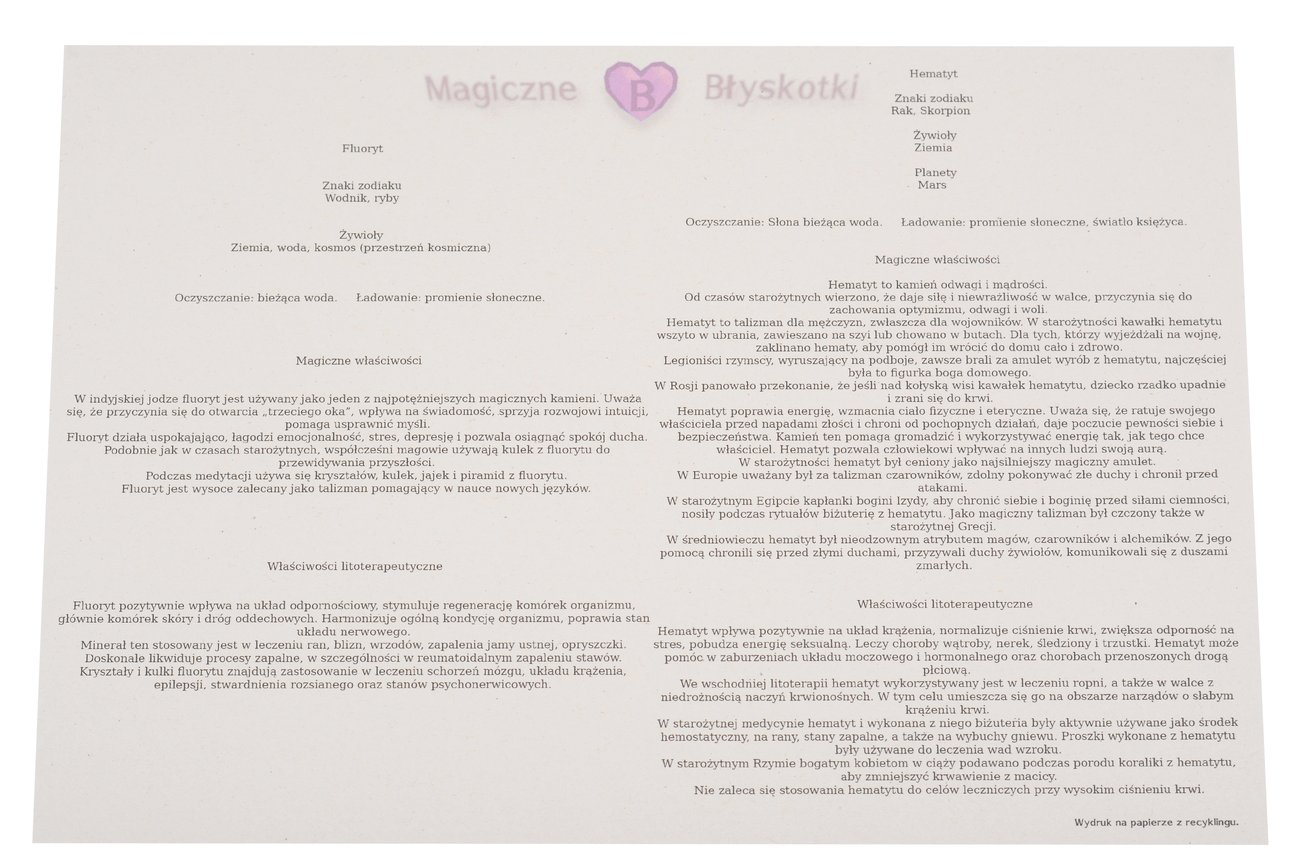 W komplecie otrzymujesz: bransoletkę, opis kamieni i kopertę jako opakowanie, co czyni ten zestaw unikalnym upominkiem.