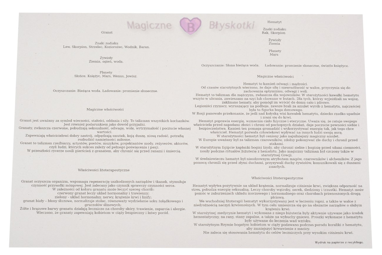 W komplecie otrzymujesz: bransoletkę, opis kamieni i kopertę jako opakowanie, co czyni ten zestaw unikalnym upominkiem.