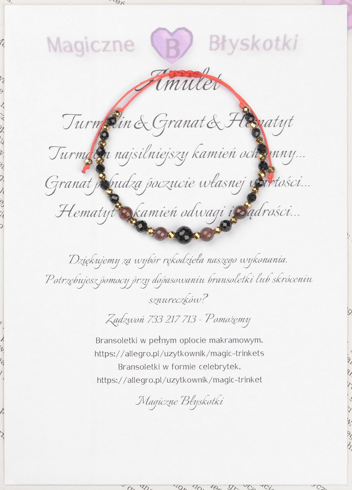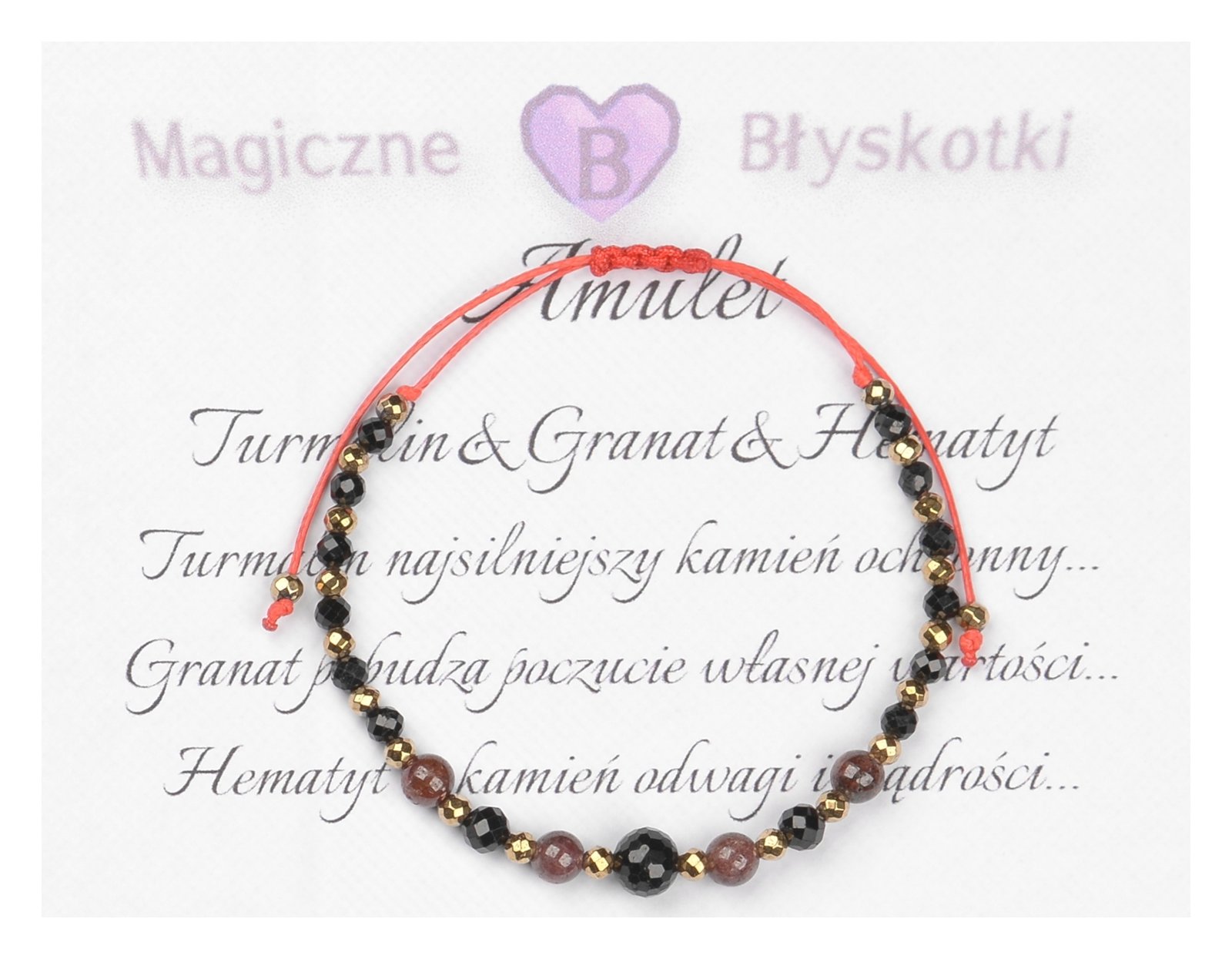 Bransoletka z kamieniami: TURMALIN + GRANAT + HEMATYT.