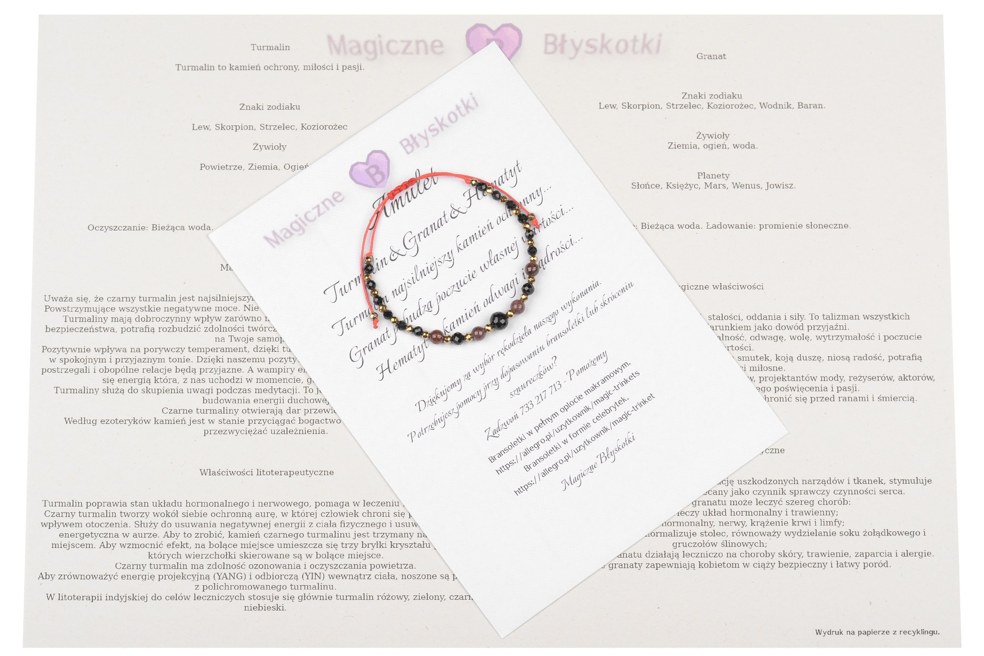 W komplecie otrzymujesz: bransoletkę, opis kamieni i kopertę jako opakowanie, co czyni ten zestaw unikalnym upominkiem.