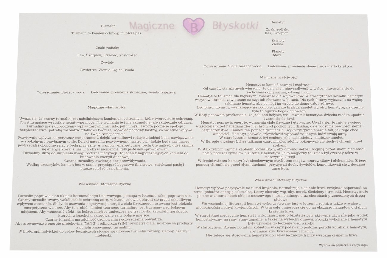 W komplecie otrzymujesz: bransoletkę, opis kamieni i kopertę jako opakowanie, co czyni ten zestaw unikalnym upominkiem.