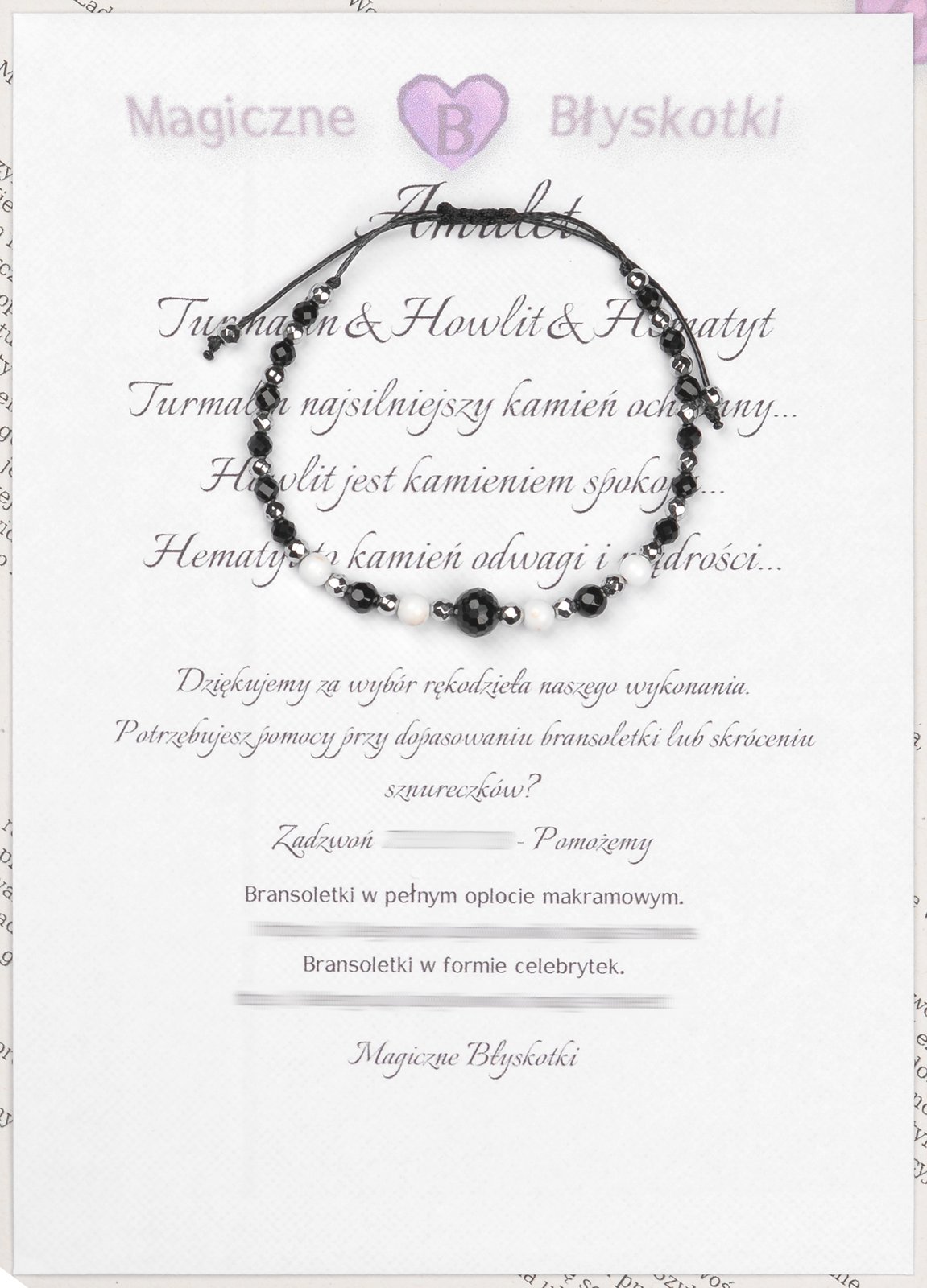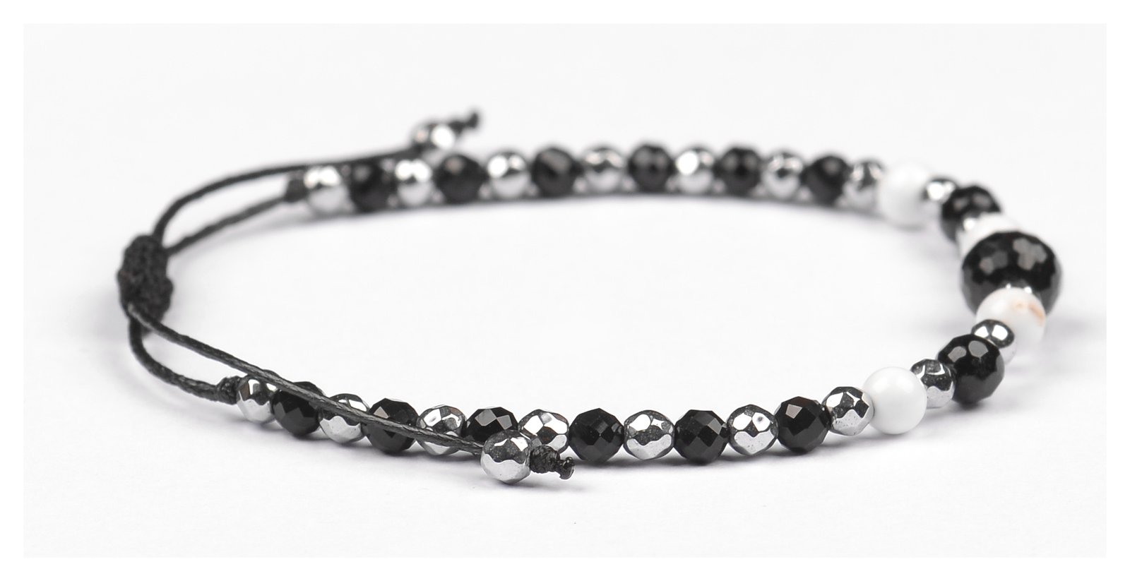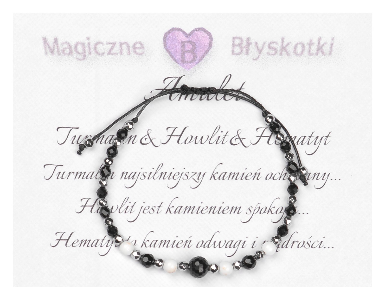Bransoletka z kamieniami: TURMALIN + HOWLIT + HEMATYT.