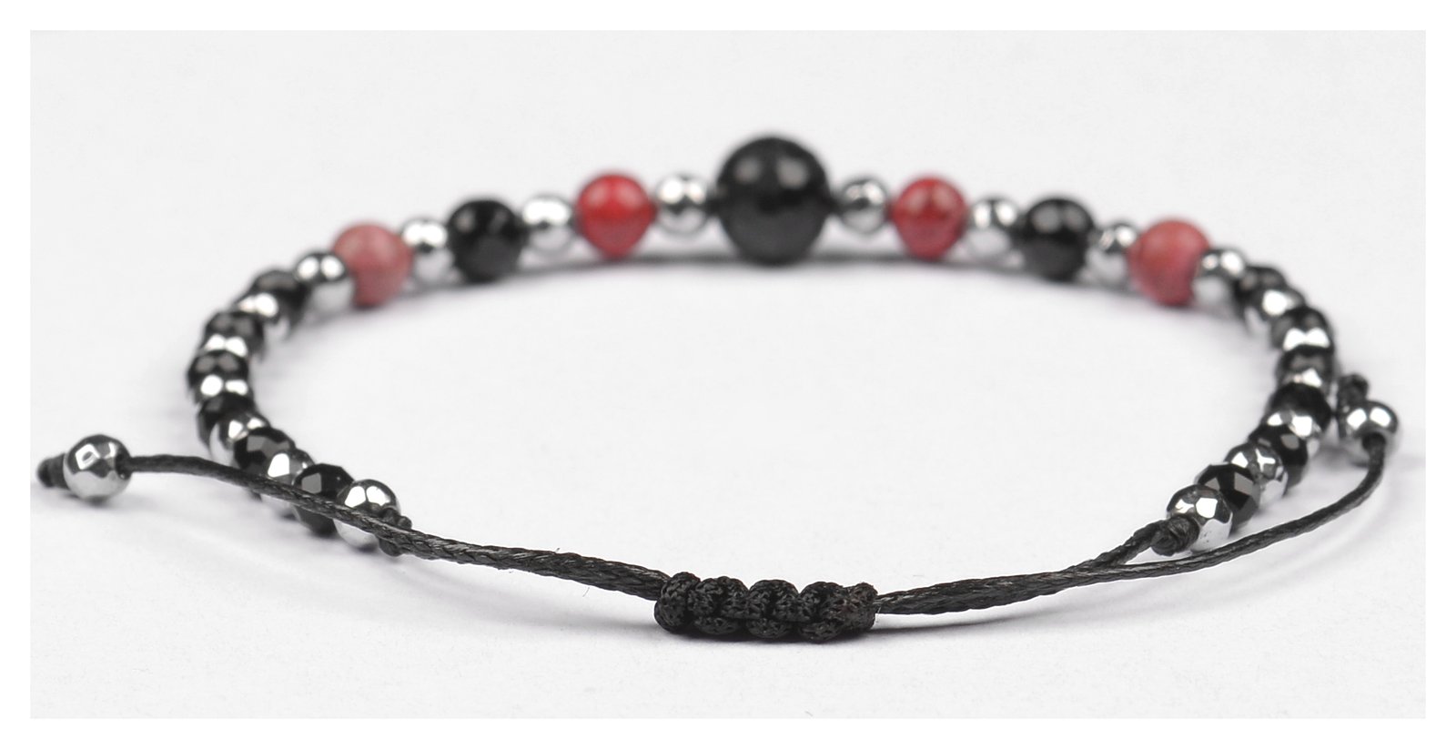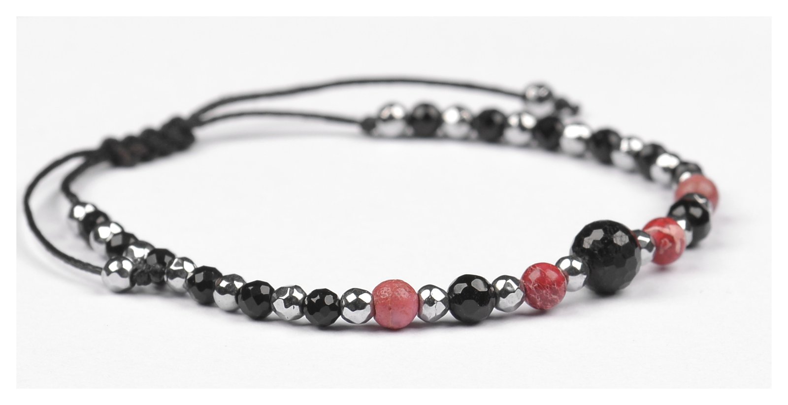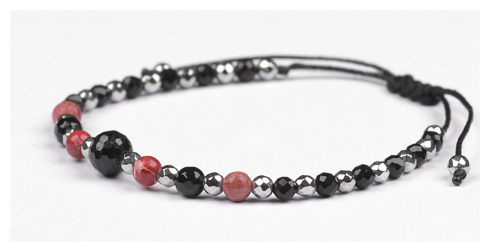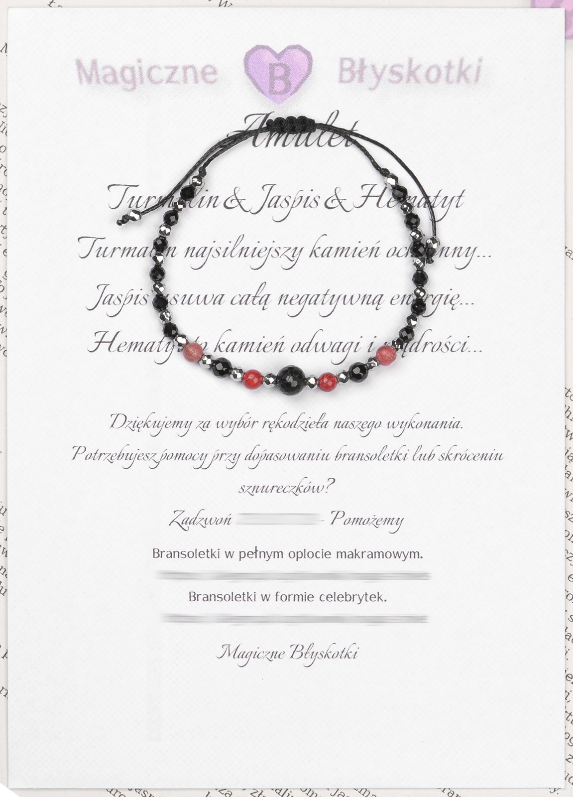 Bransoletka z kamieniami: TURMALIN + JASPIS cesarski + HEMATYT.