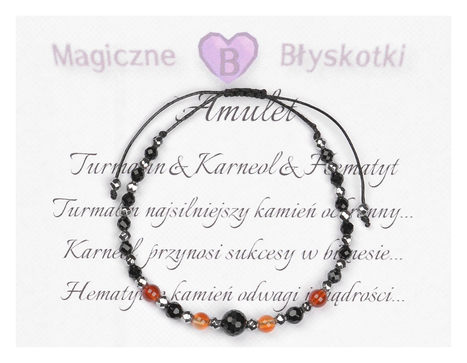 Bransoletka z kamieniami: TURMALIN + KARNEOL + HEMATYT.