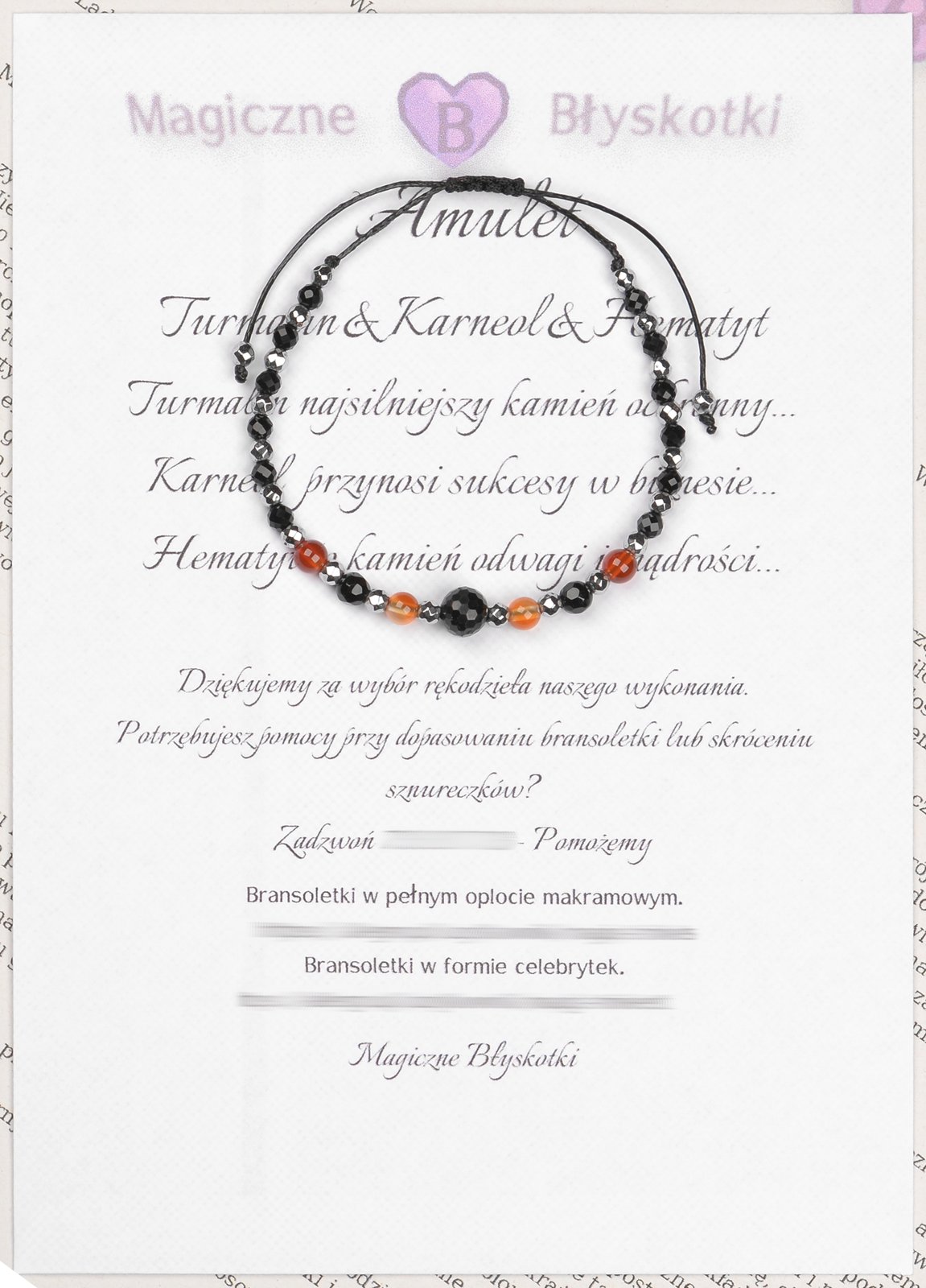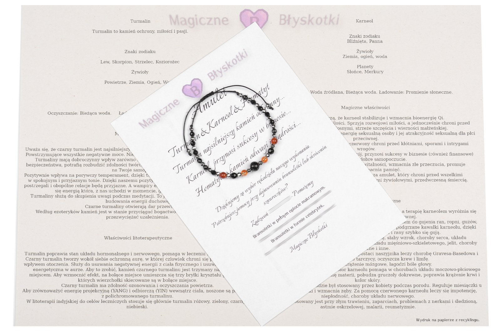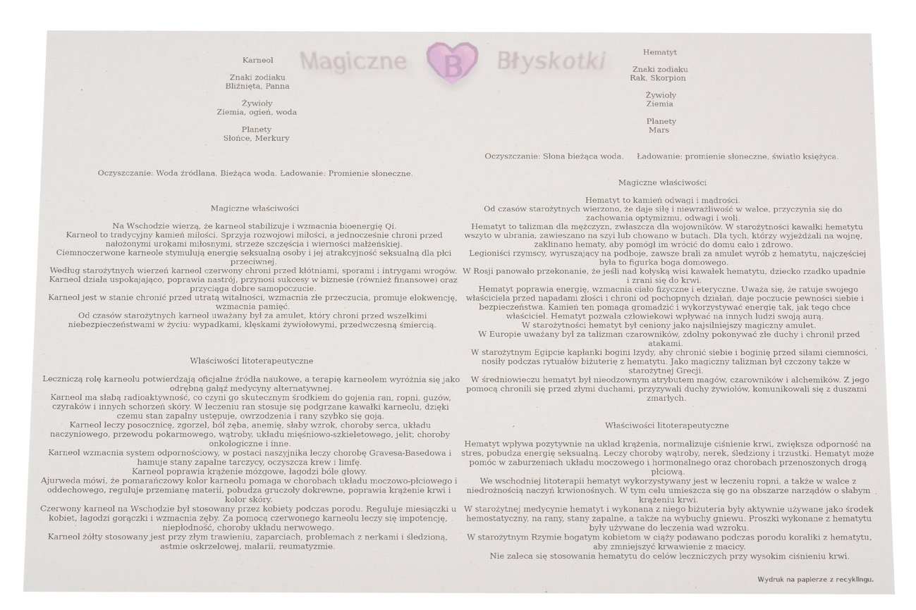 W komplecie otrzymujesz: bransoletkę, opis kamieni i kopertę jako opakowanie, co czyni ten zestaw unikalnym upominkiem.