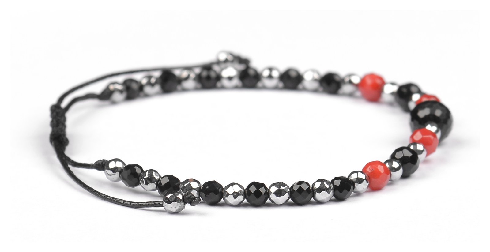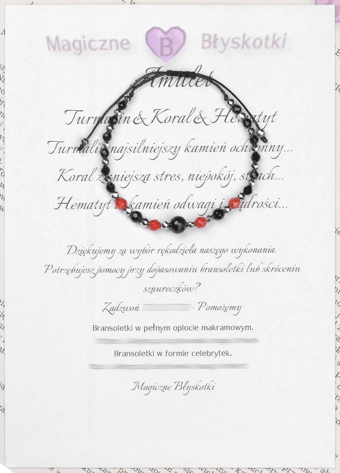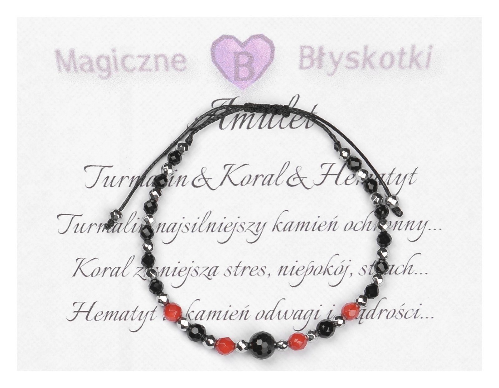 Bransoletka z kamieniami: TURMALIN + KORAL + HEMATYT.