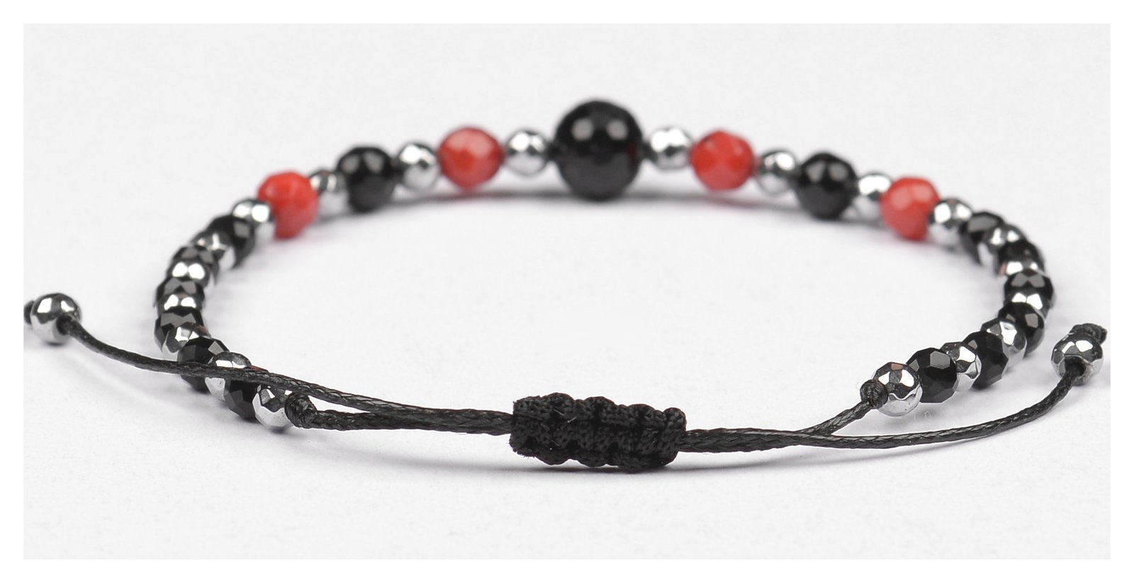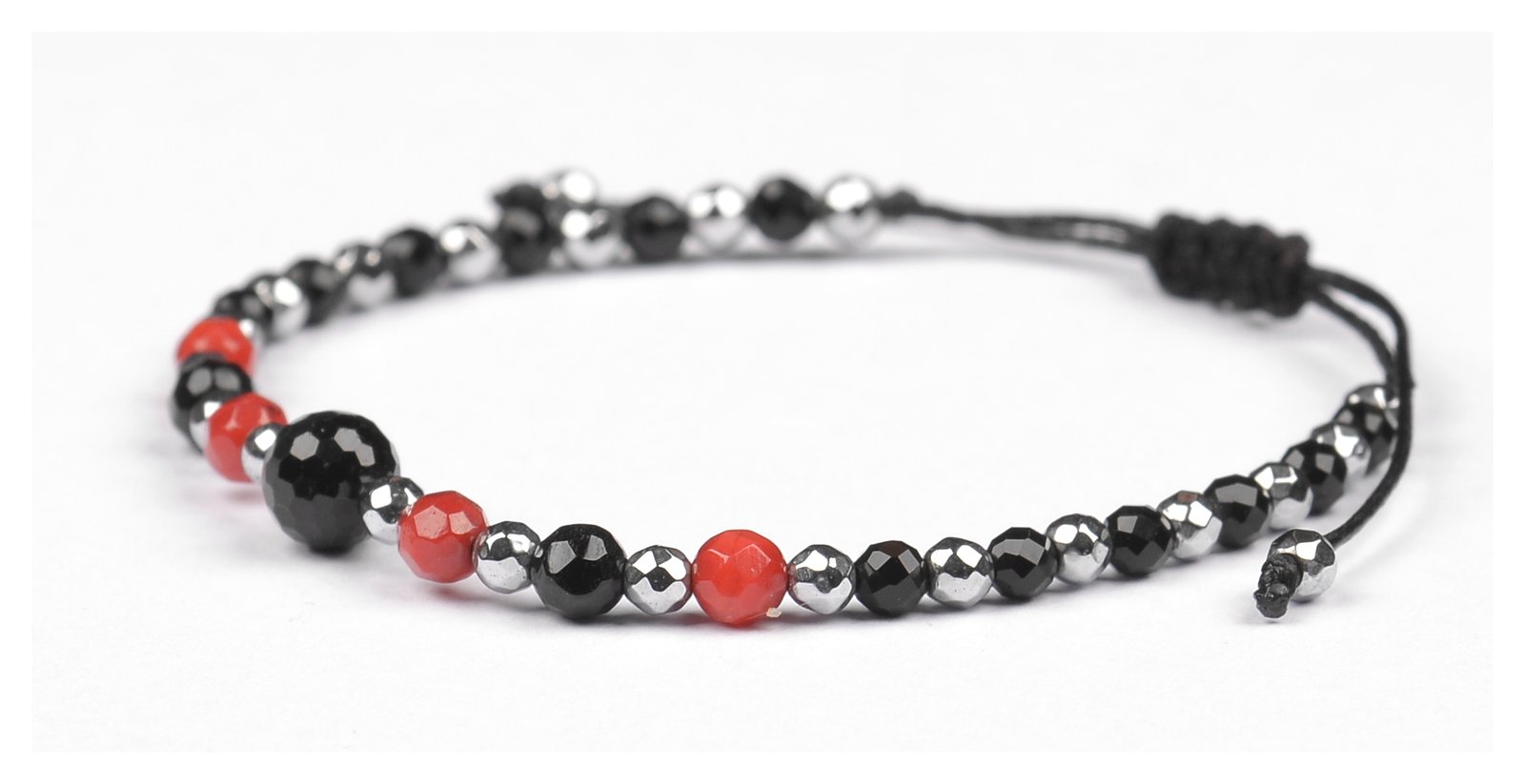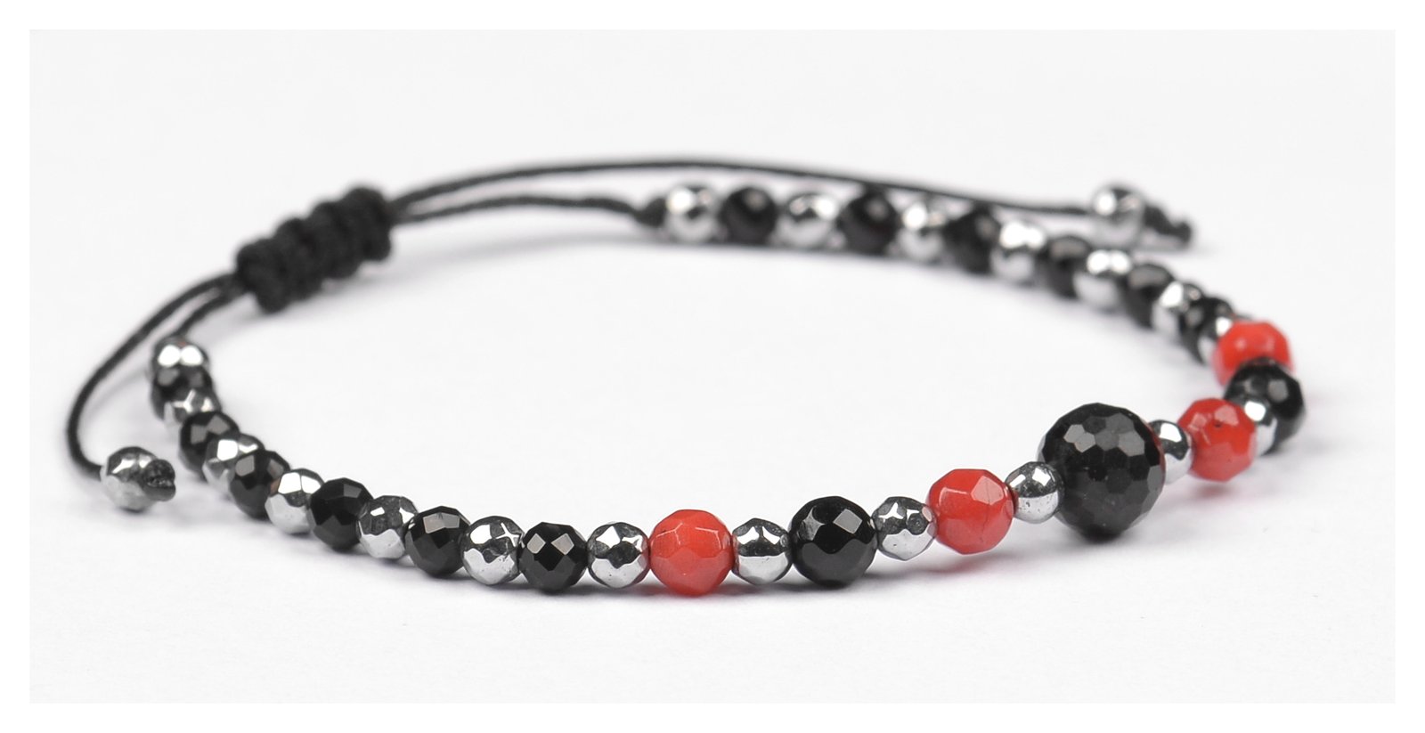 Bransoletka z kamieniami: TURMALIN + KORAL + HEMATYT.