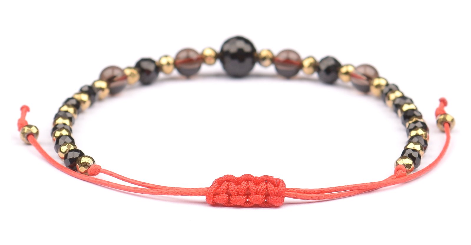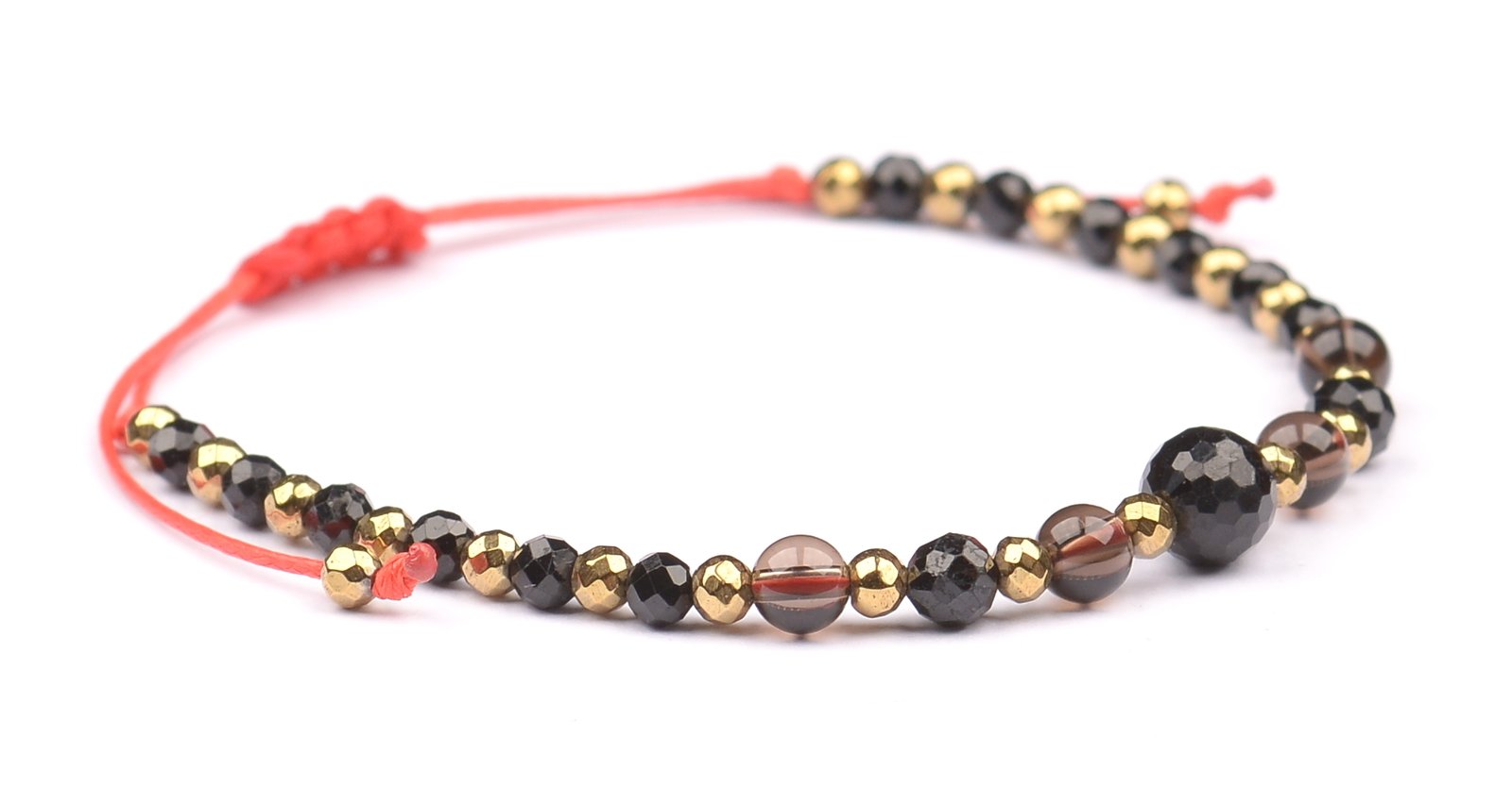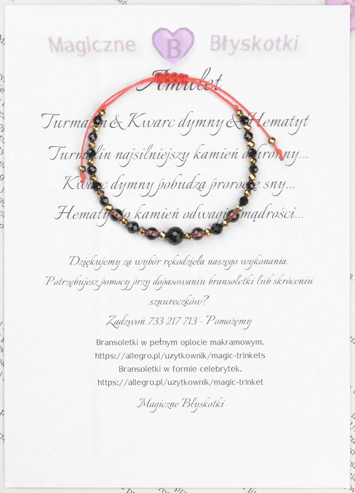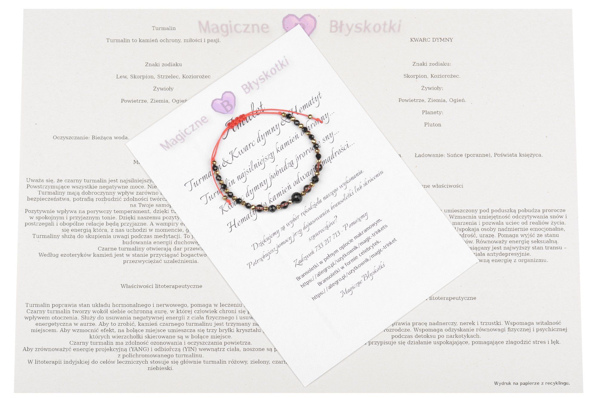 Bransoletka z kamieniami: TURMALIN + KWARC DYMNY + HEMATYT.