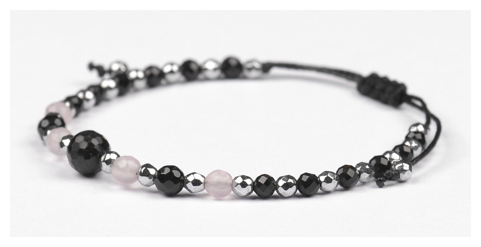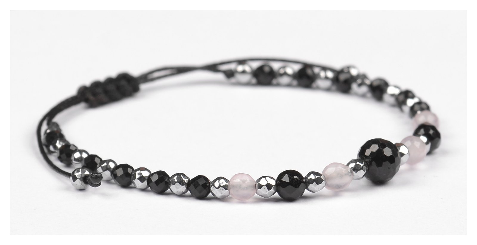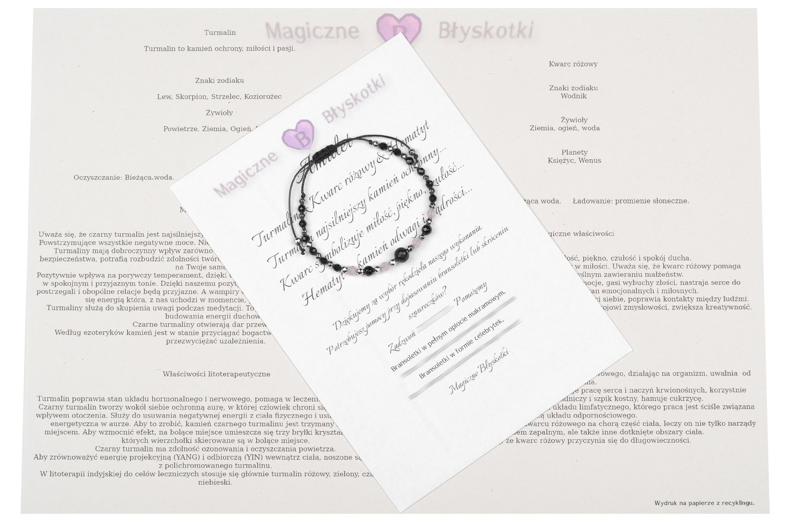 Bransoletka z kamieniami: TURMALIN + Kwarc Różowy + HEMATYT.