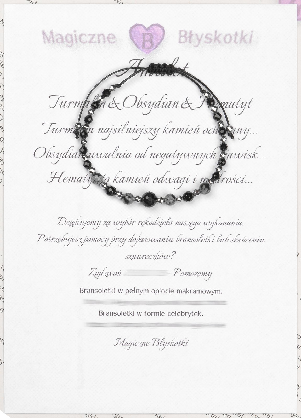 Bransoletka z kamieniami: TURMALIN + OBSYDIAN + HEMATYT.