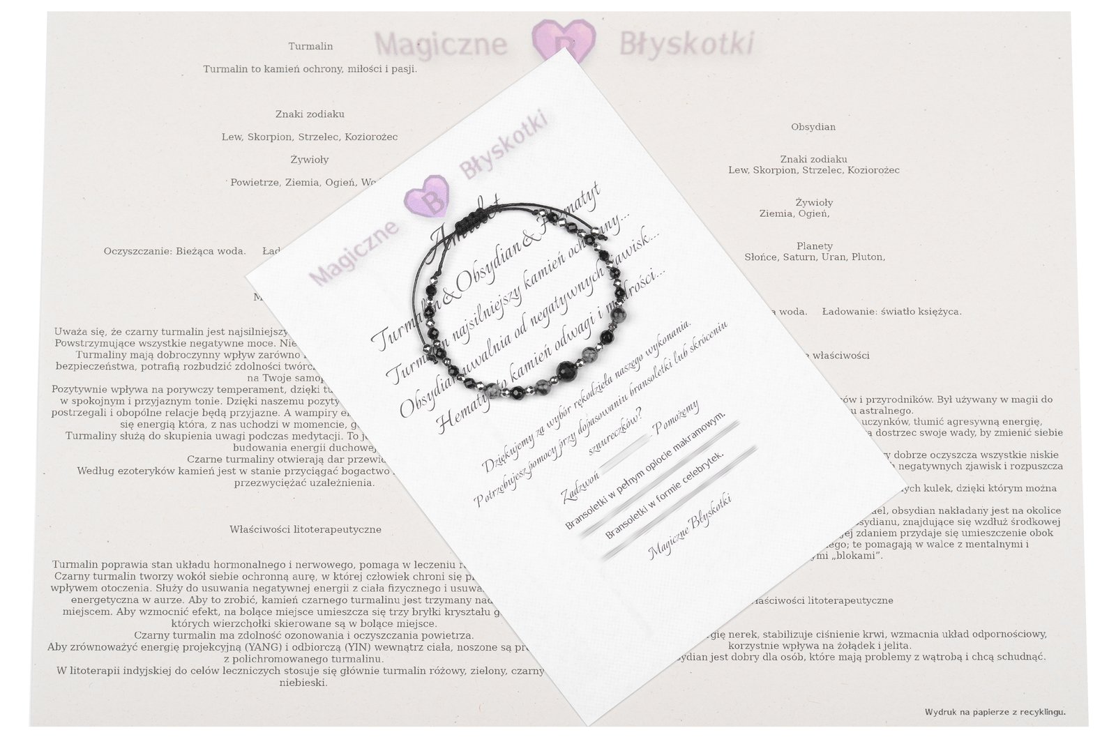 W komplecie otrzymujesz: bransoletkę, opis kamieni i kopertę jako opakowanie, co czyni ten zestaw unikalnym upominkiem.