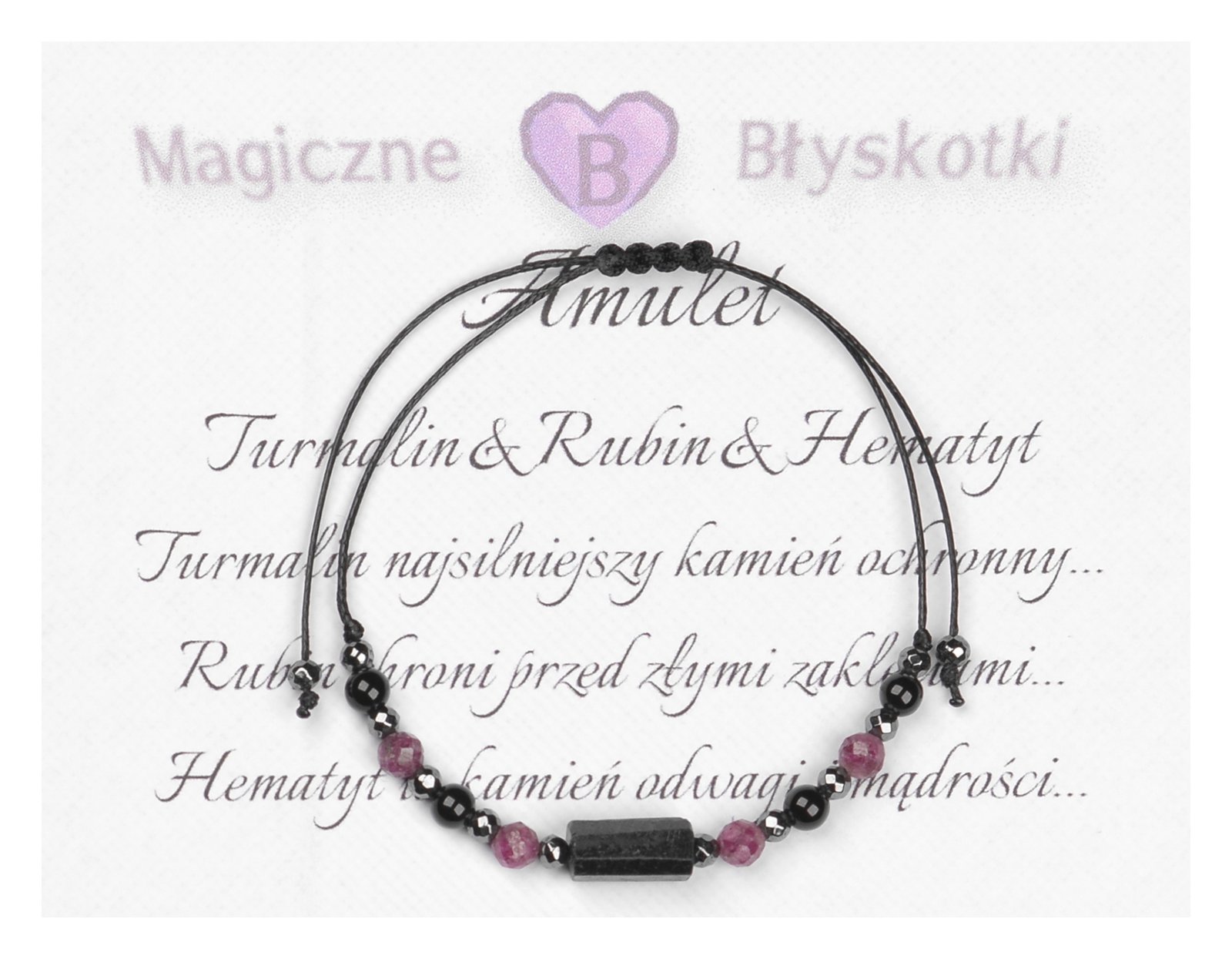 Bransoletka z kamieniami: TURMALIN + RUBIN + HEMATYT.