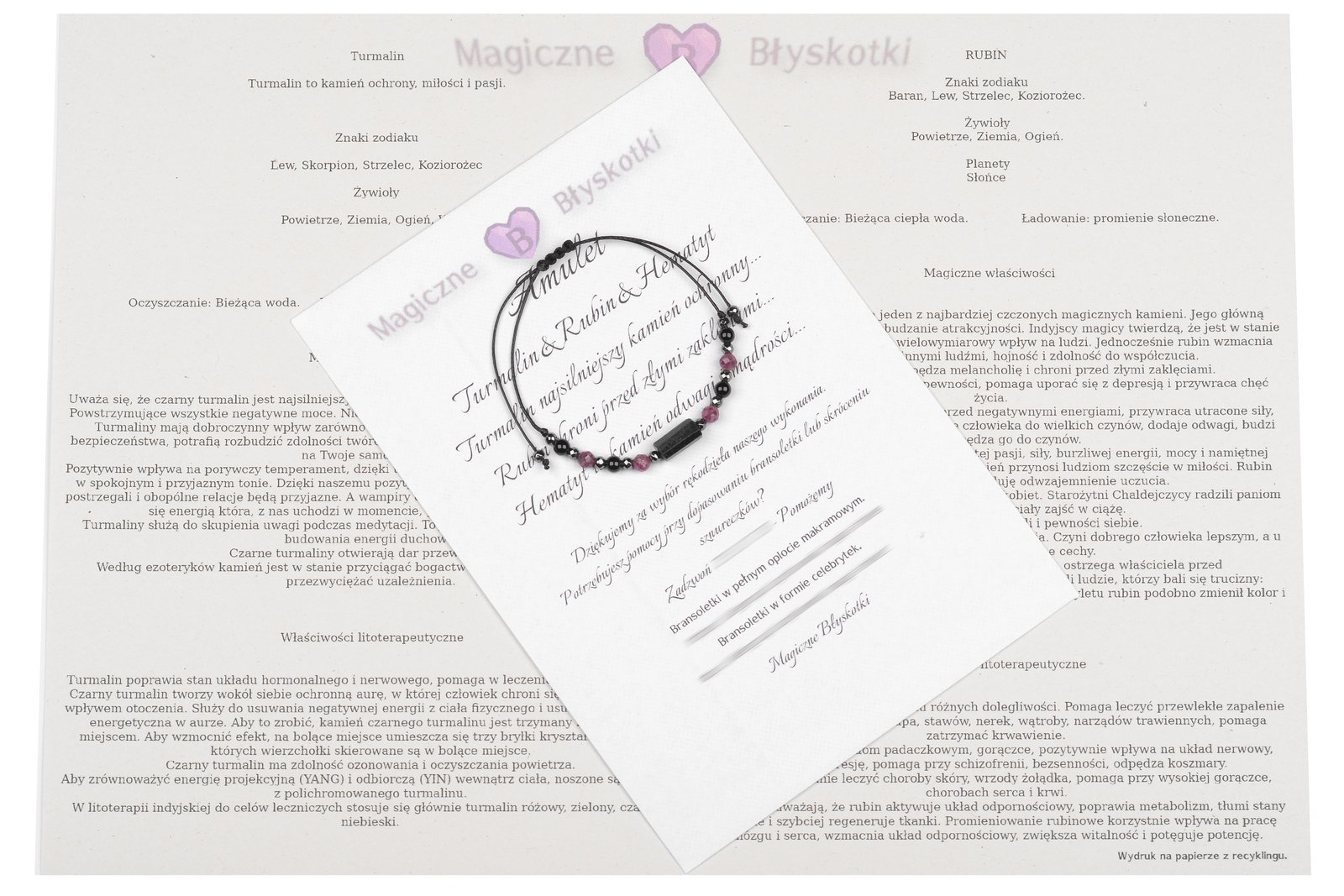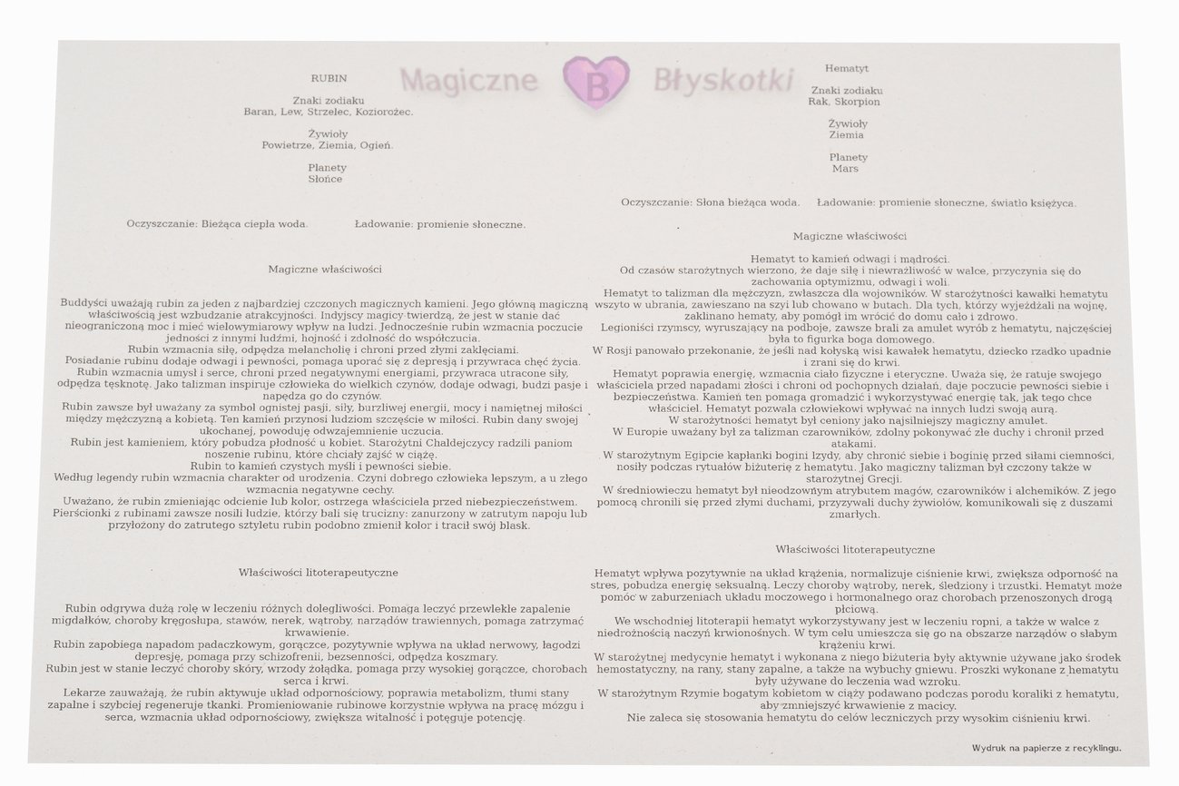 W komplecie otrzymujesz: bransoletkę, opis kamieni i kopertę jako opakowanie, co czyni ten zestaw unikalnym upominkiem.