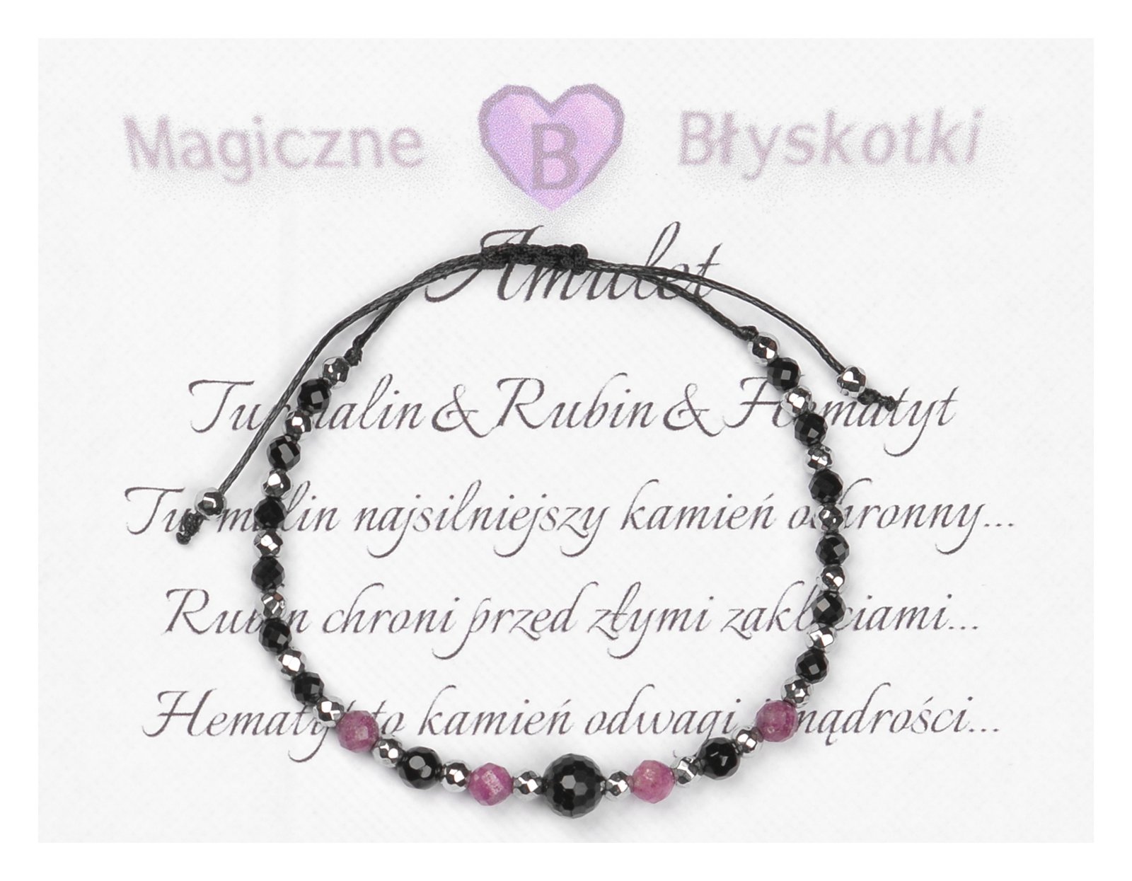 Bransoletka z kamieniami: TURMALIN + RUBIN + HEMATYT.