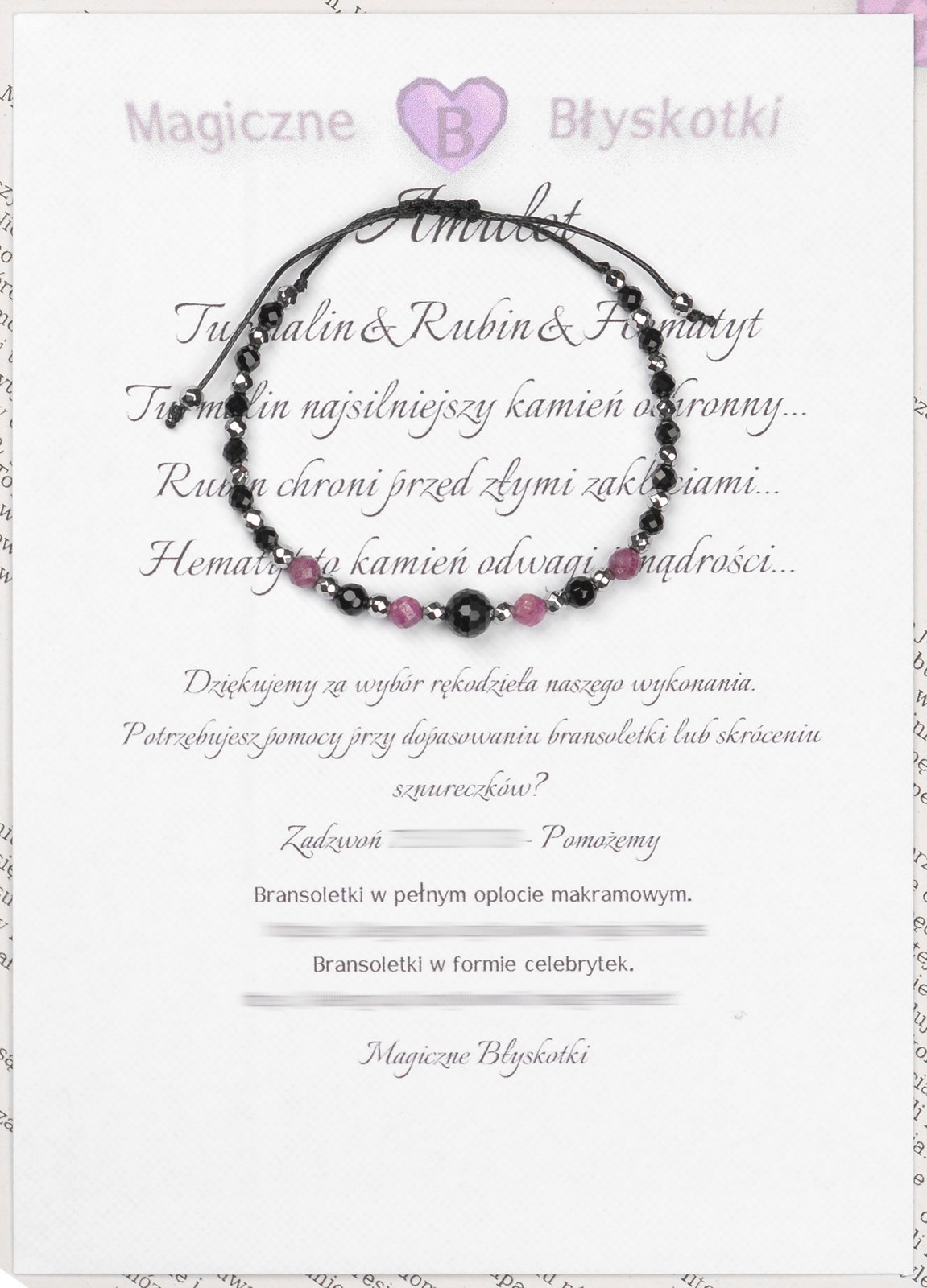 Istnieje możliwość wykonania indywidualnej bransoletki: rodzaj / wielkość kamieni, sznurka i obwodu.