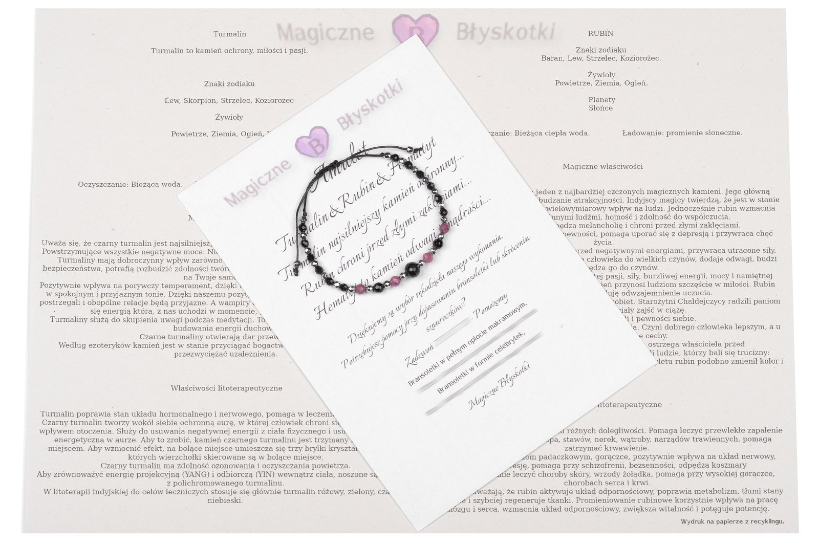 W komplecie otrzymujesz: bransoletkę, opis kamieni i kopertę jako opakowanie, co czyni ten zestaw unikalnym upominkiem.