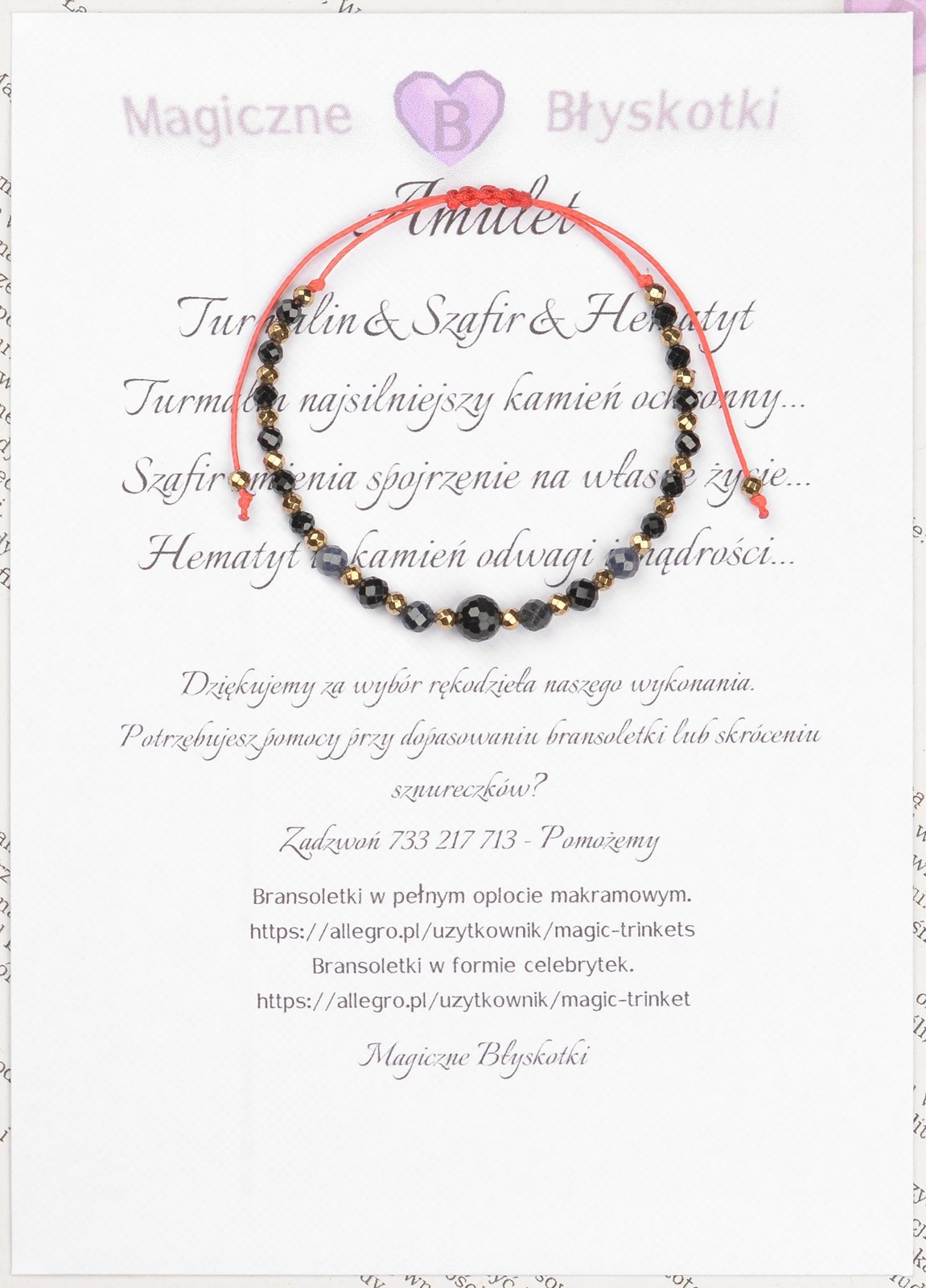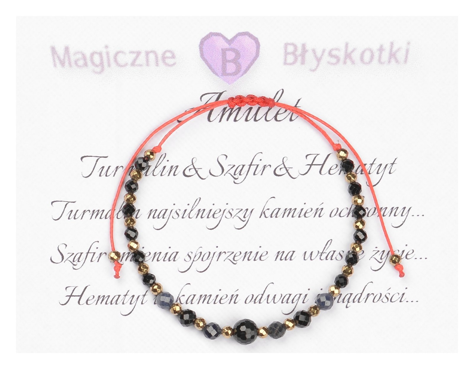 Bransoletka z kamieniami: TURMALIN + SZAFIR + HEMATYT.