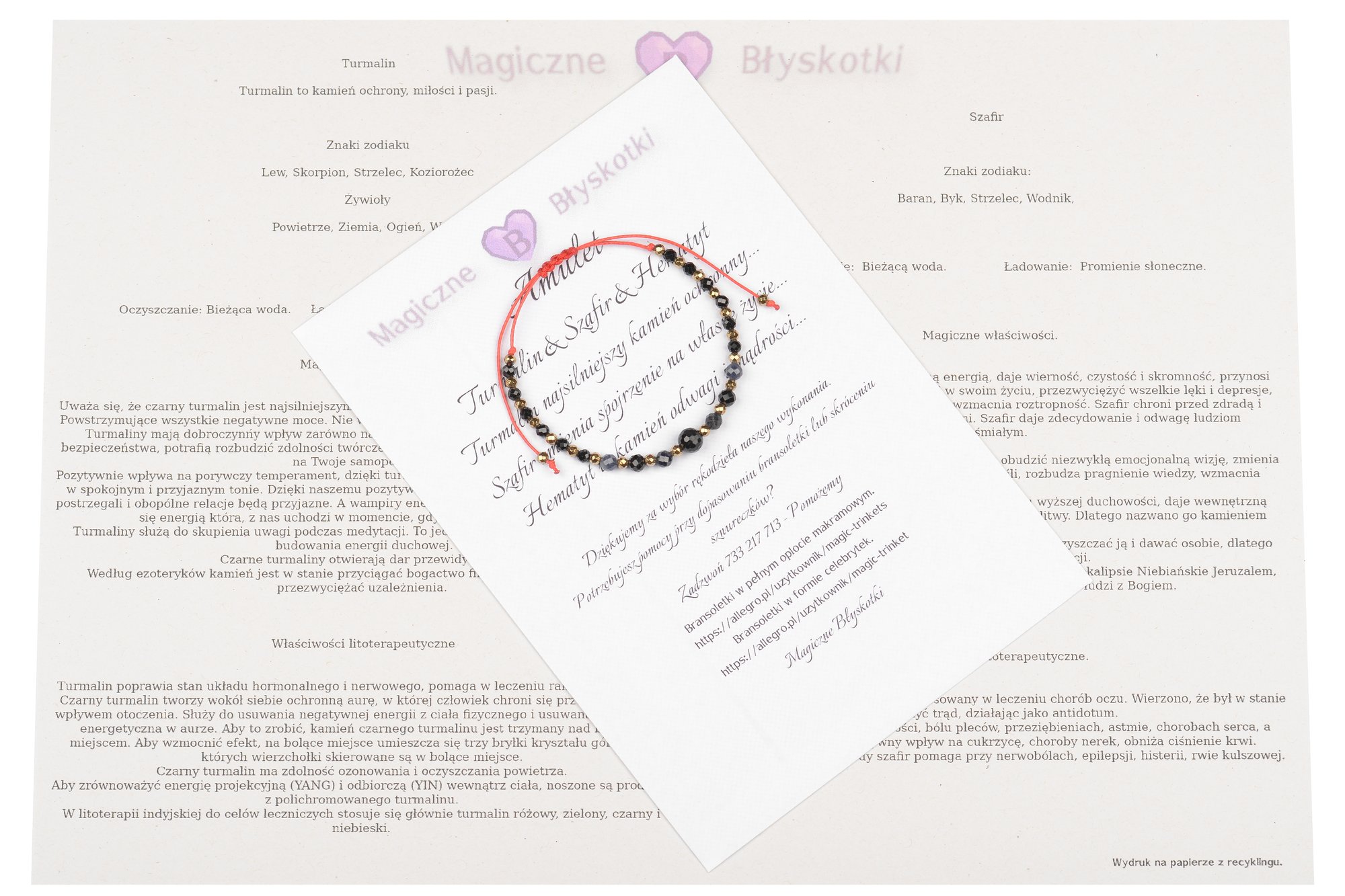 W komplecie otrzymujesz: bransoletkę, opis kamieni i kopertę jako opakowanie, co czyni ten zestaw unikalnym upominkiem.