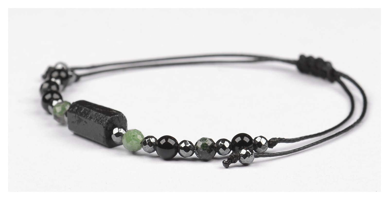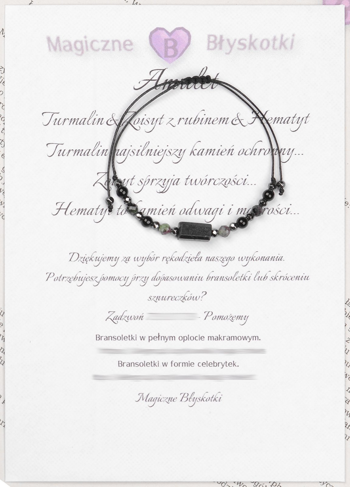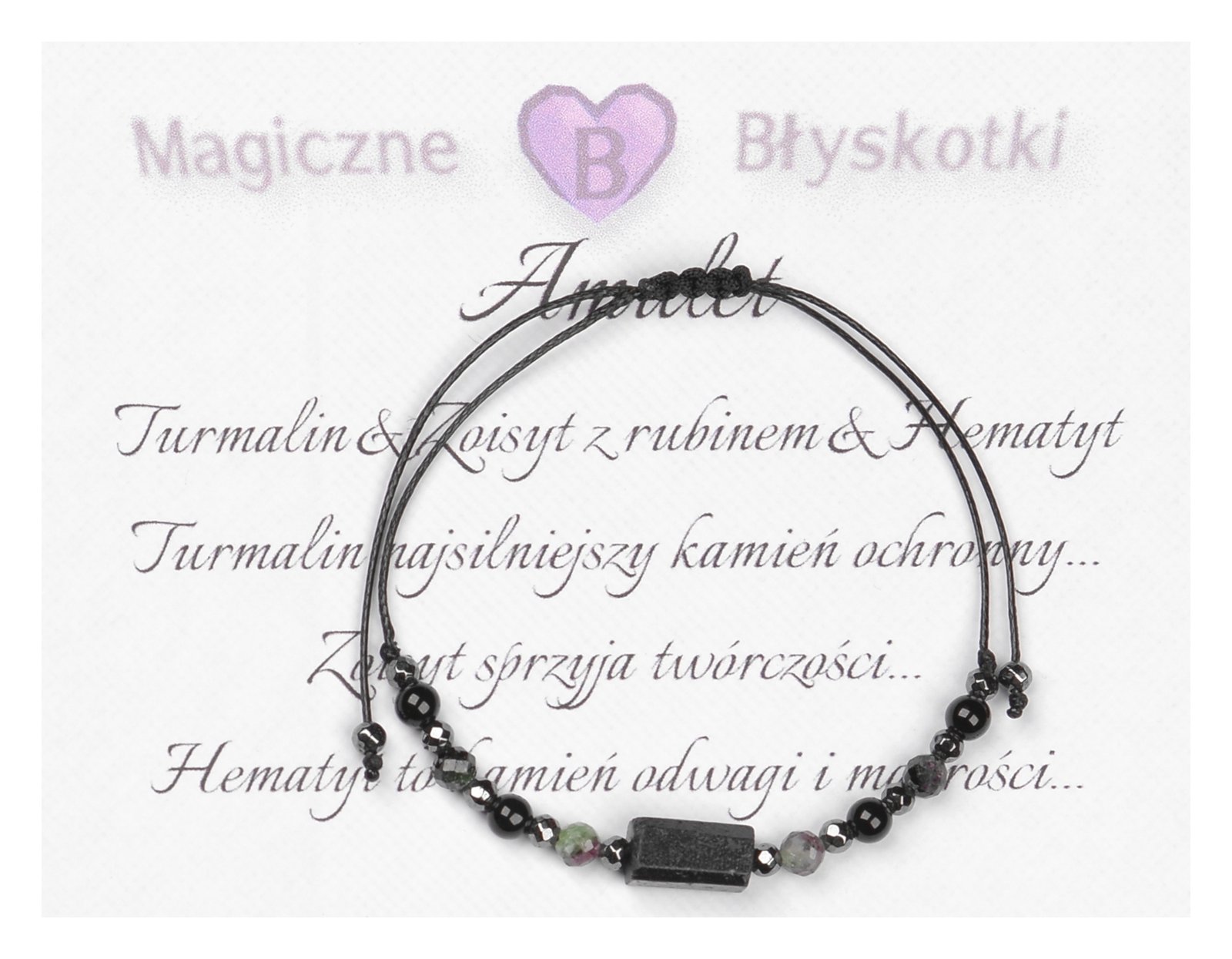 Bransoletka z kamieniami: TURMALIN + ZOISYT Z RUBINEM + HEMATYT.
