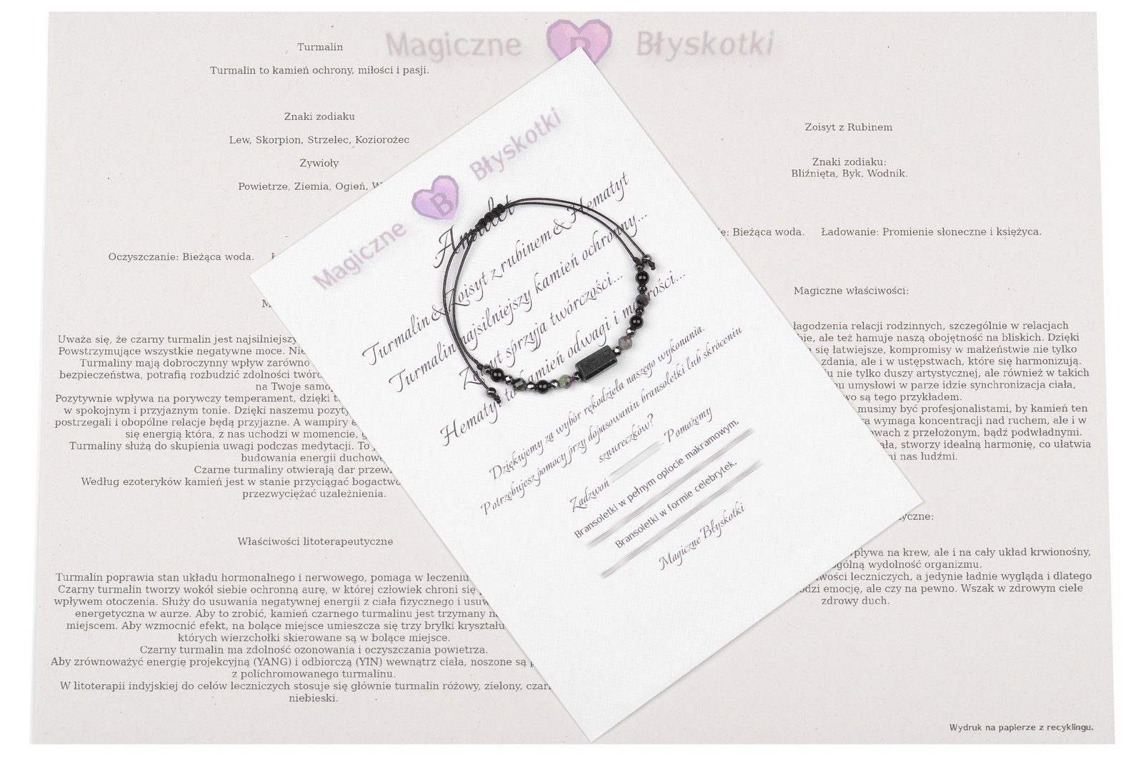 W komplecie otrzymujesz: bransoletkę, opis kamieni i kopertę jako opakowanie, co czyni ten zestaw unikalnym upominkiem.