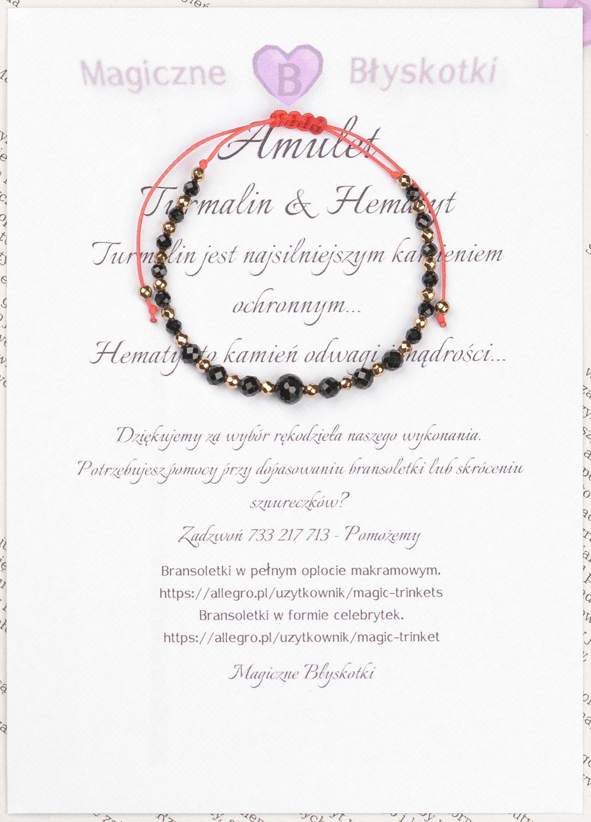 Istnieje możliwość wykonania indywidualnej bransoletki: rodzaj / wielkość kamieni, sznurka i obwodu.