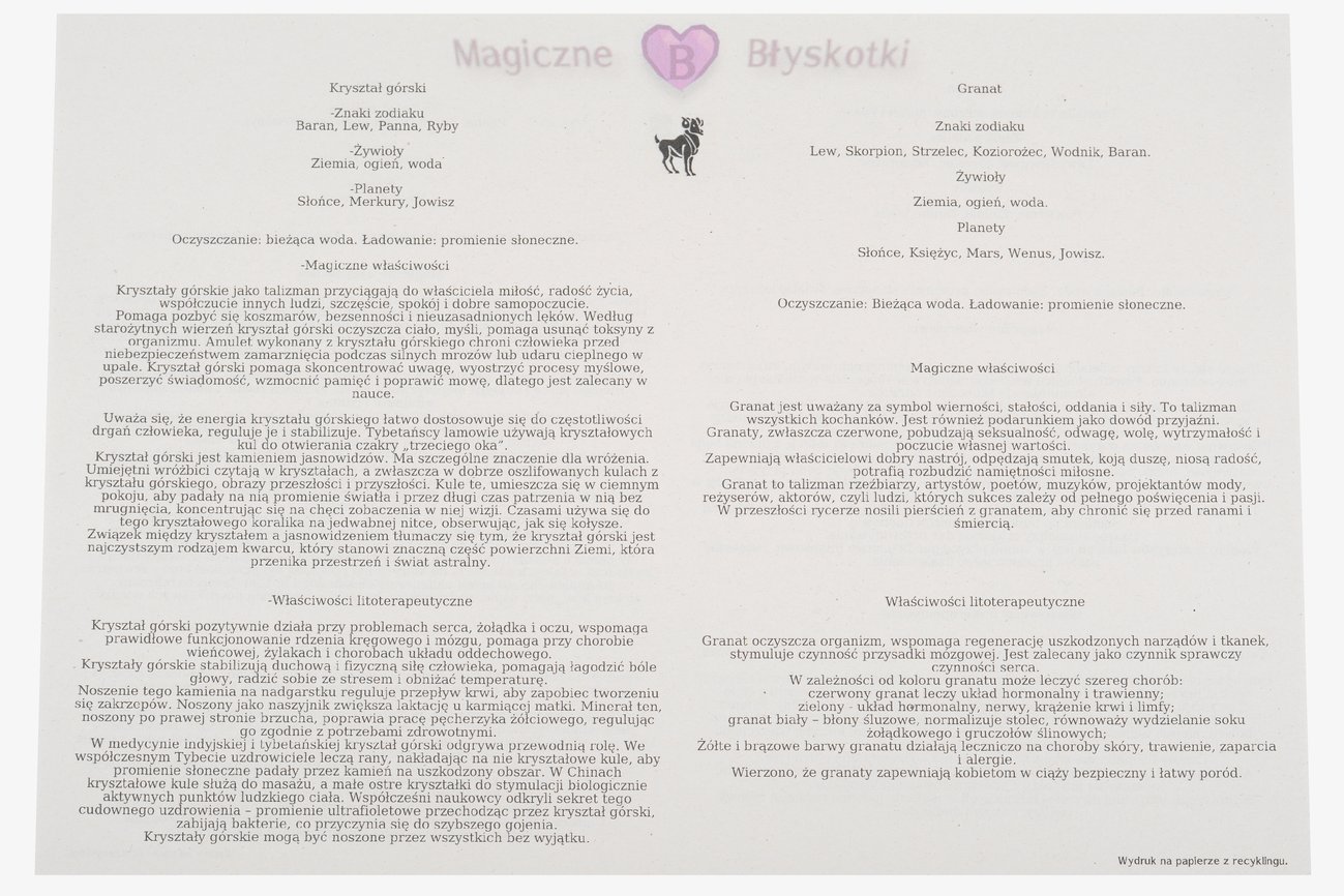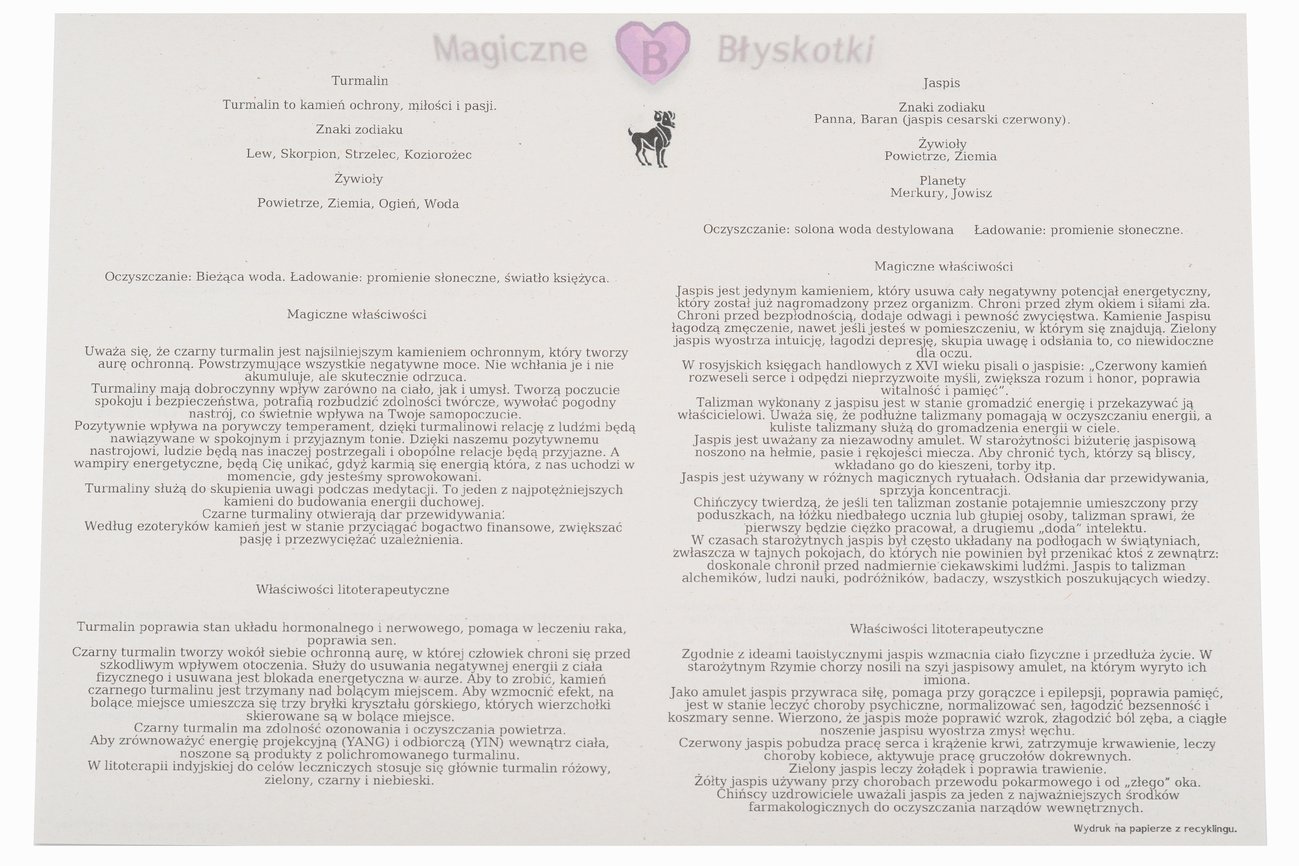 Dokładniejsze właściwości kamieni, znajdują się poniżej.