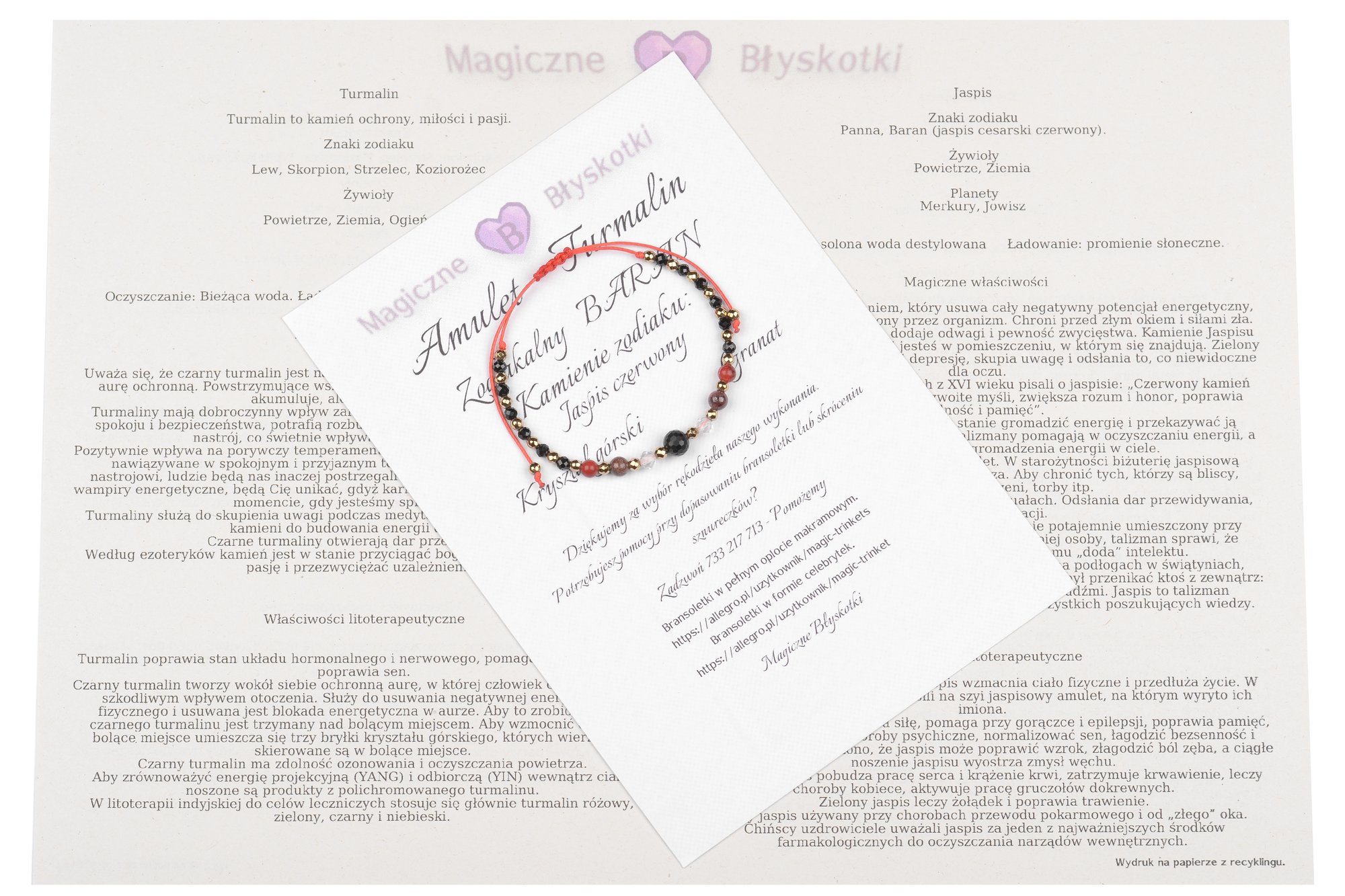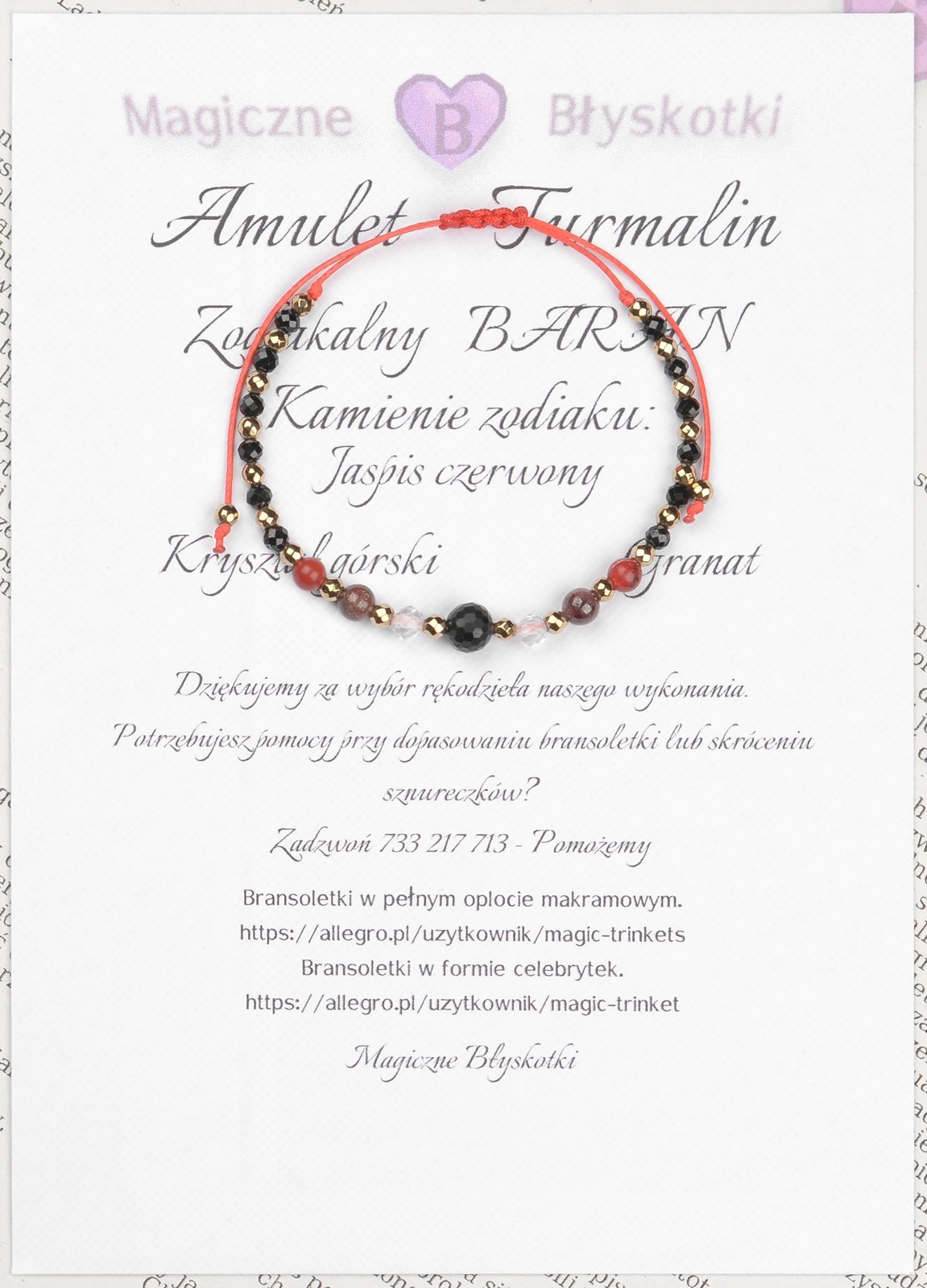 Bransoletka z kamieniami TURMALINU + zodiakalne kamienie BARANA.
