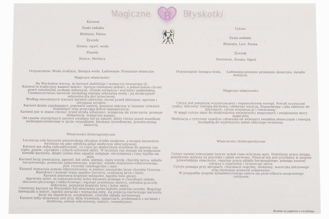 Dokładniejsze właściwości kamieni, znajdują się poniżej.