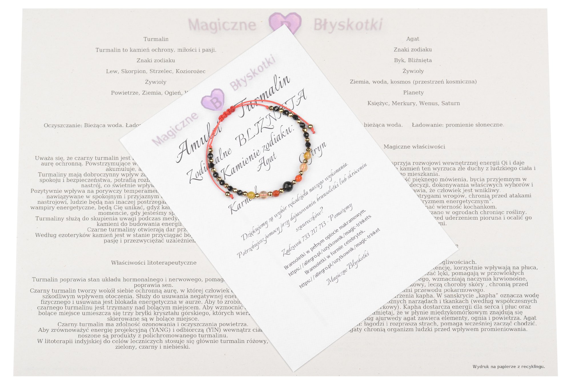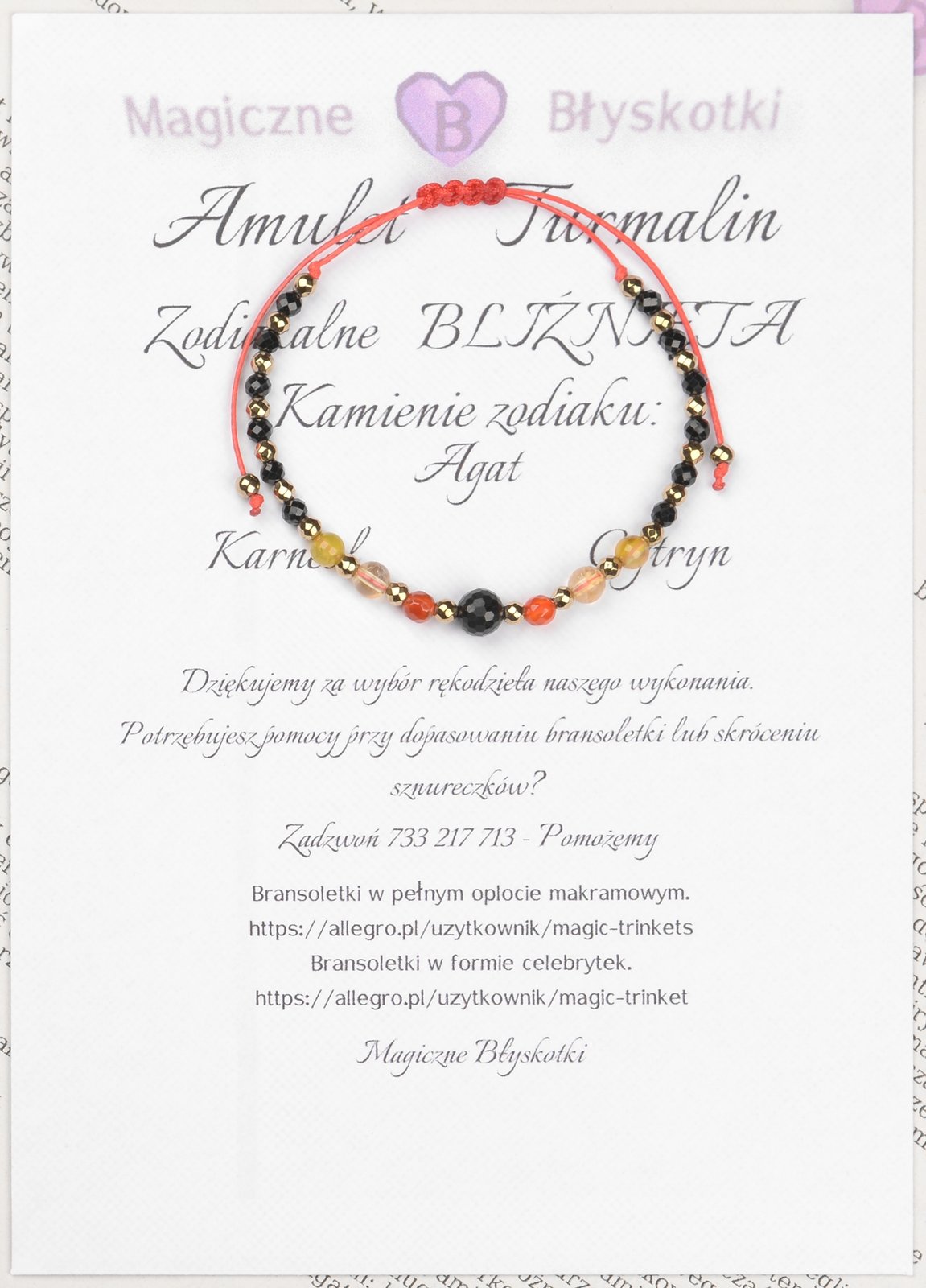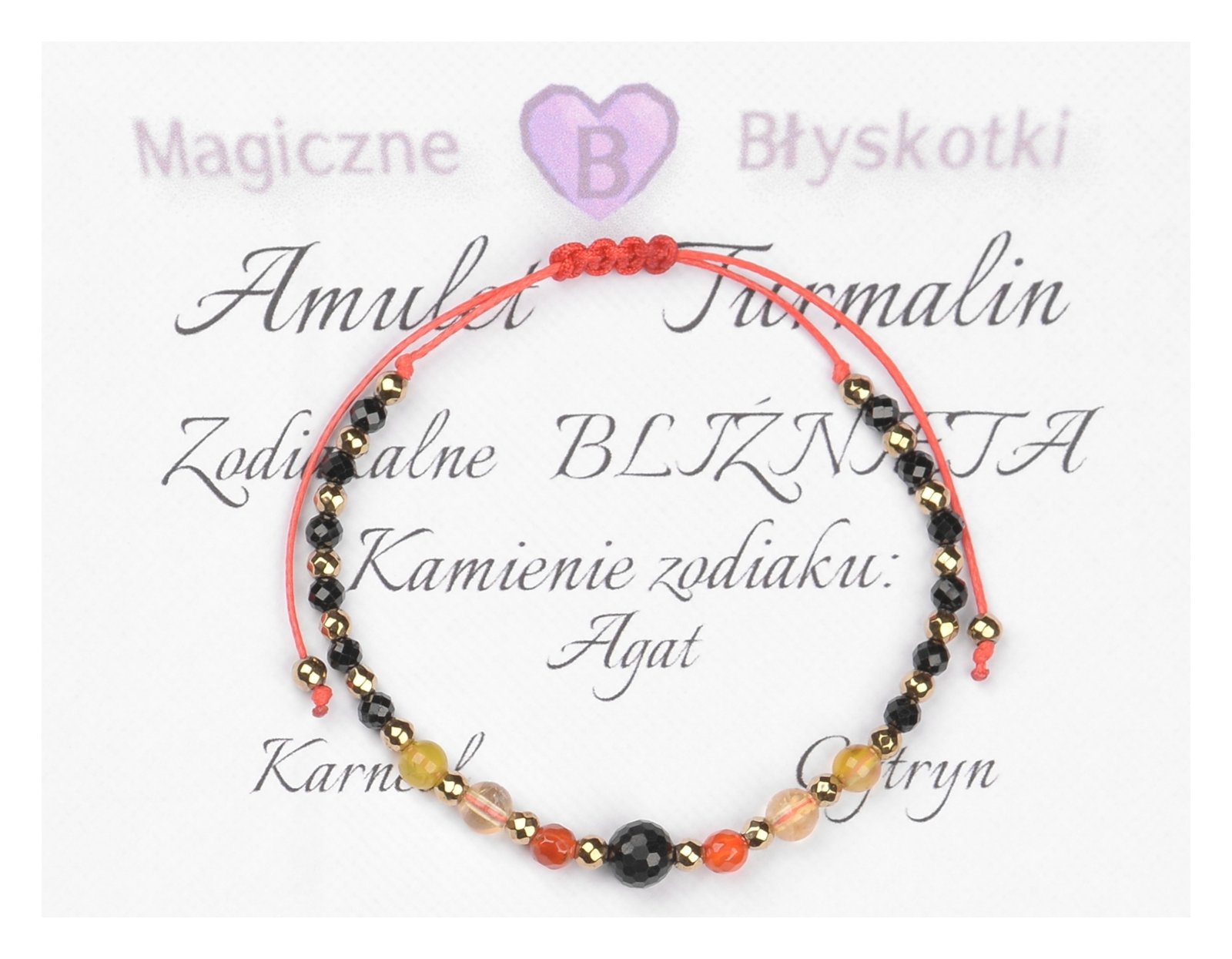 Bransoletka z kamieniami TURMALINU + zodiakalne kamienie BLIŹNIĄT.