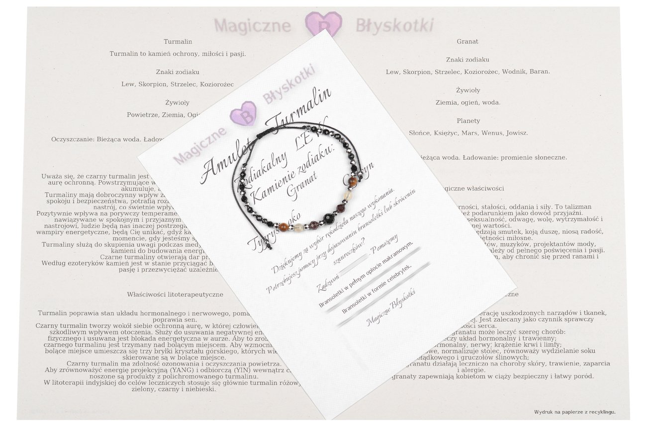 Bransoletka z kamieniami TURMALINU + zodiakalne kamienie LWA.