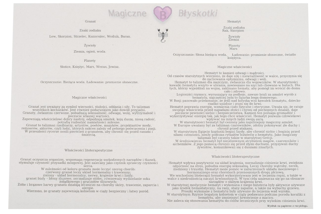 Dokładniejsze właściwości kamieni, znajdują się poniżej.