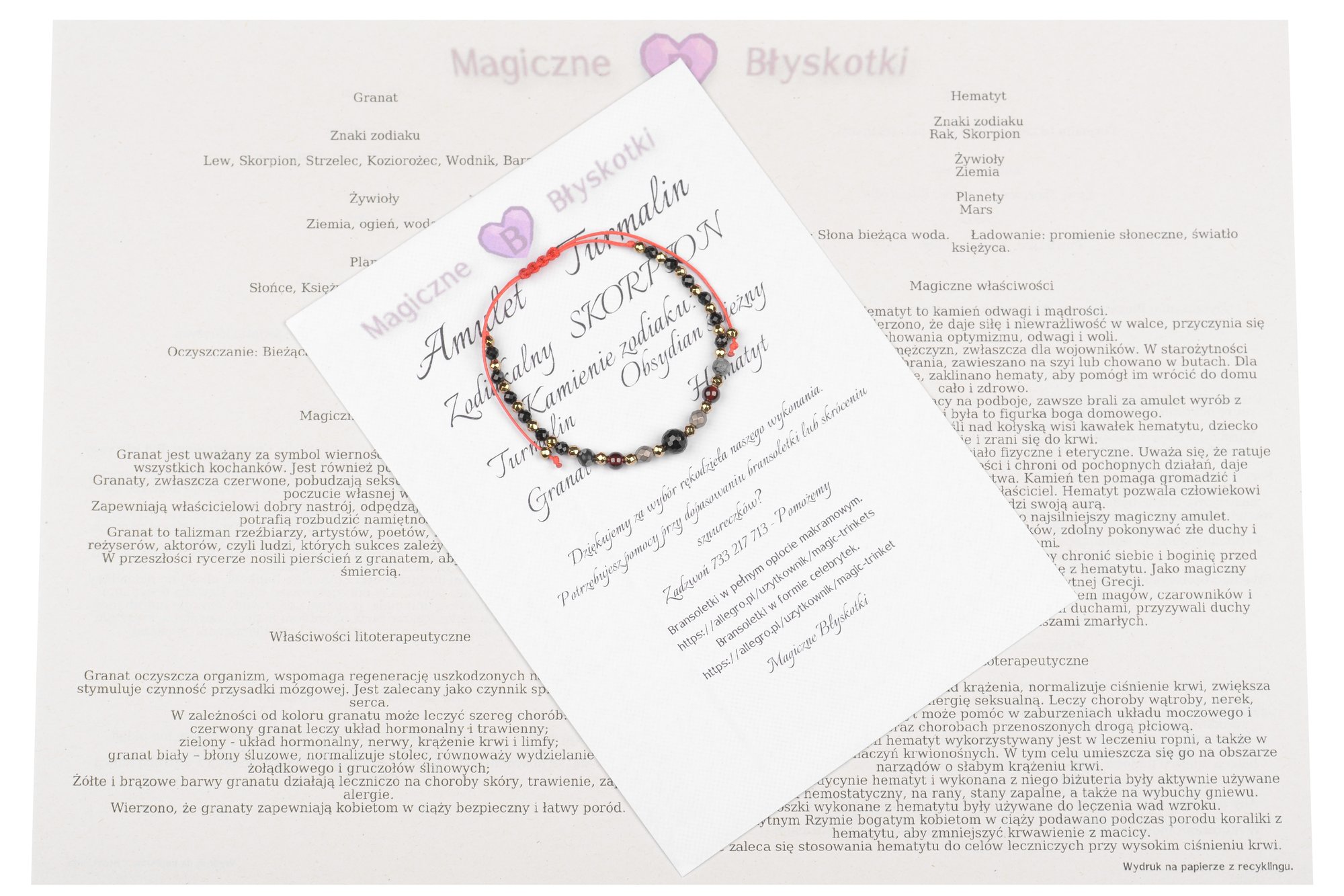 Bransoletka z kamieniami TURMALINU + zodiakalne kamienie SKORPIONA.