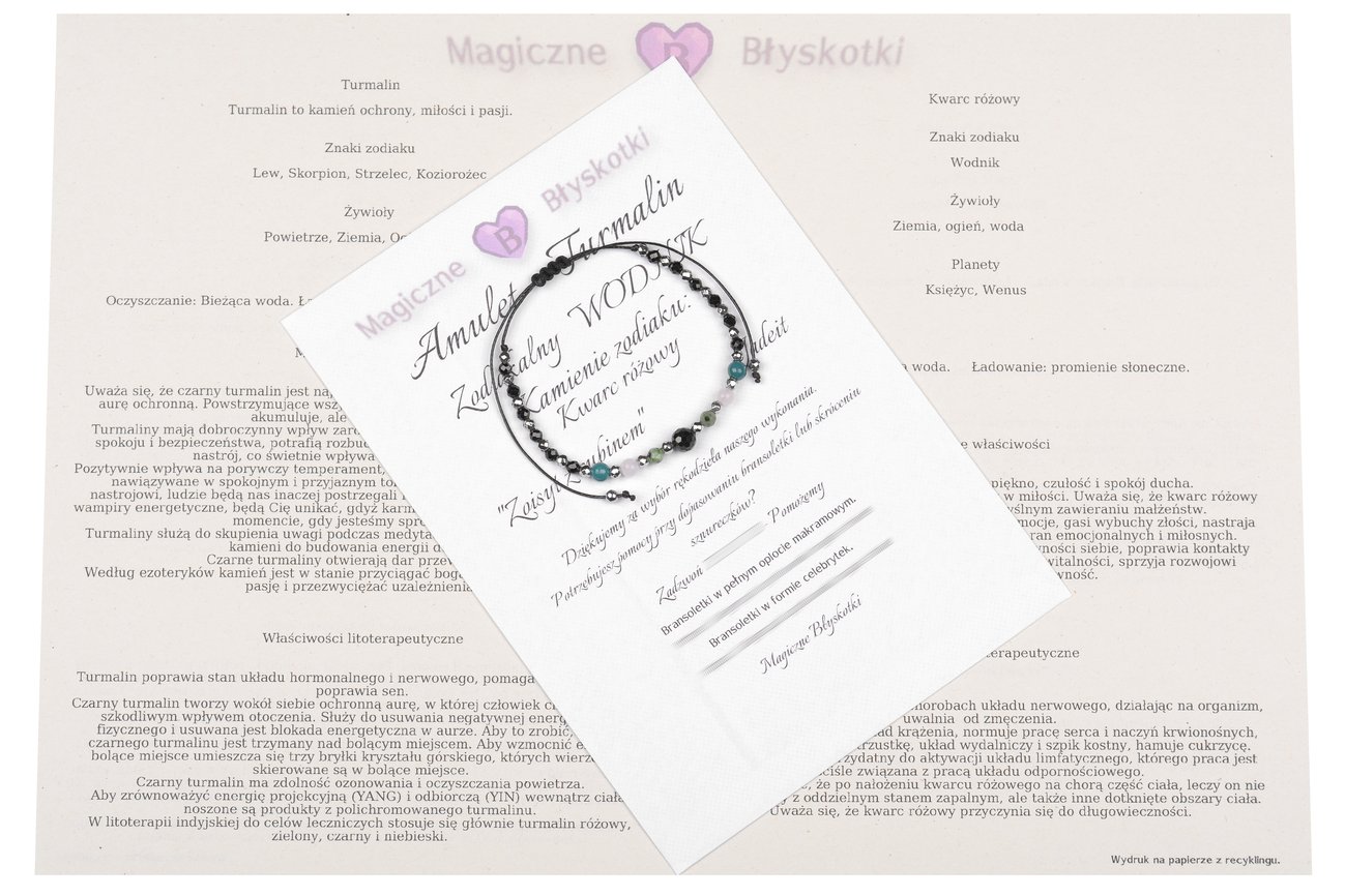 Bransoletka z kamieniami TURMALINU + zodiakalne kamienie WODNIKA.