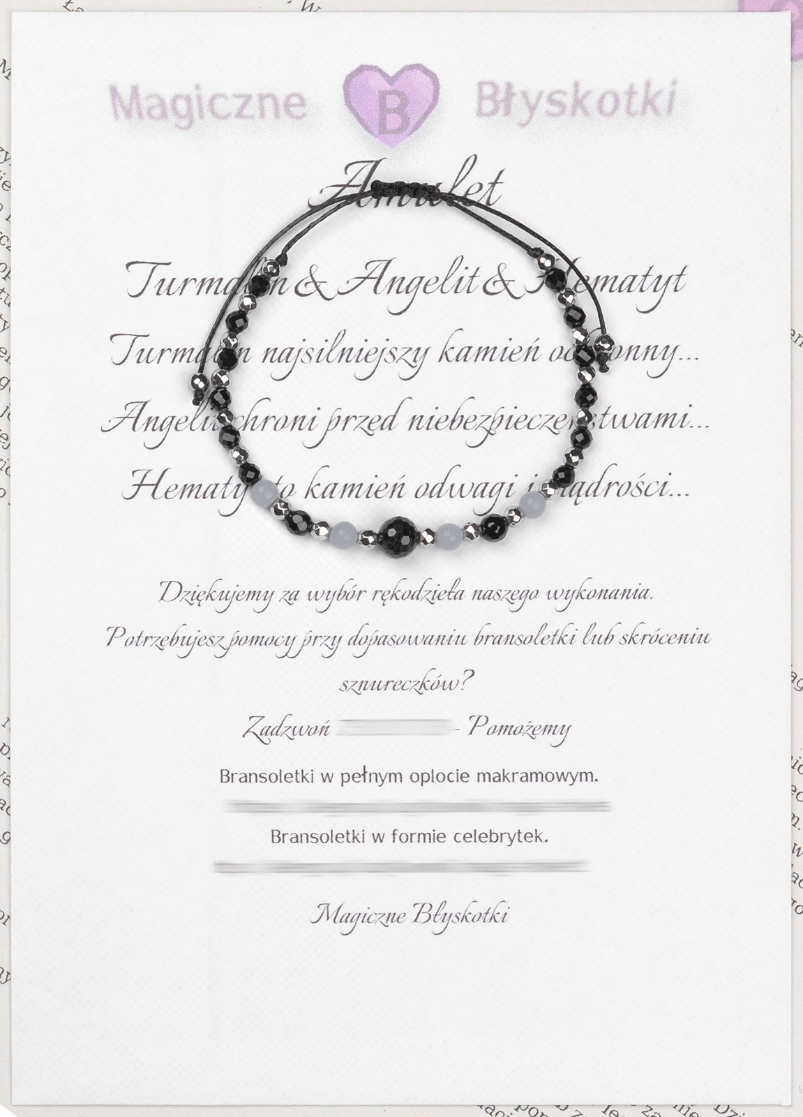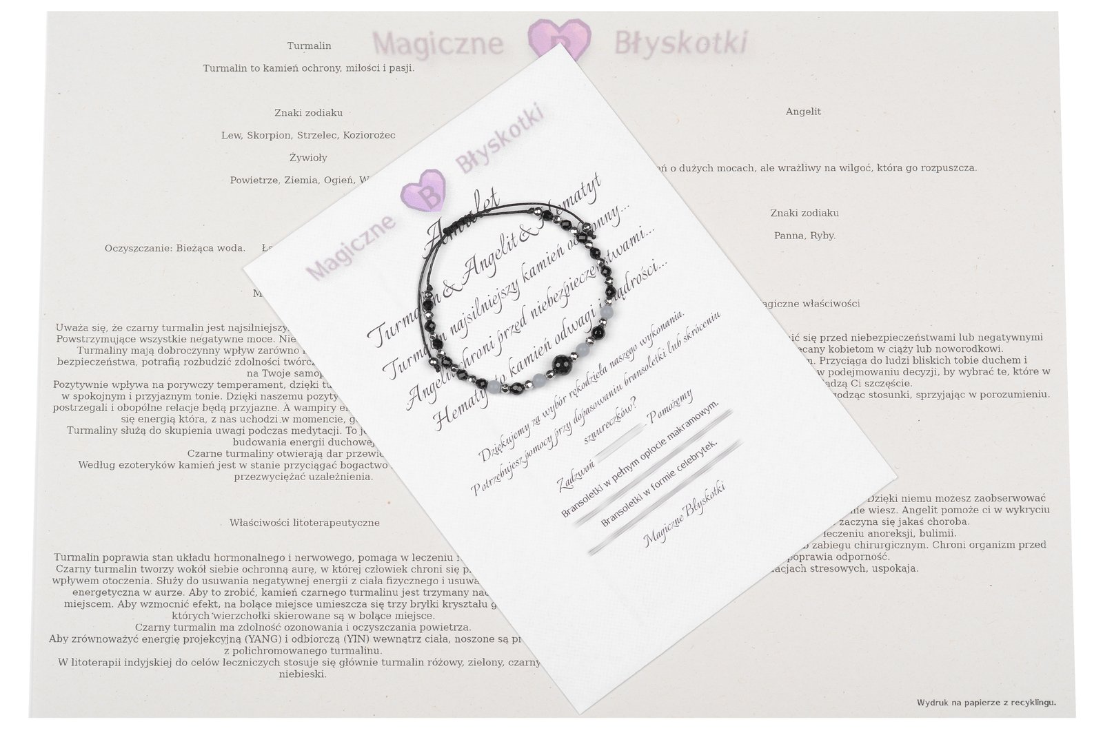 Bransoletka z kamieniami: TURMALIN + ANGELIT + HEMATYT.
