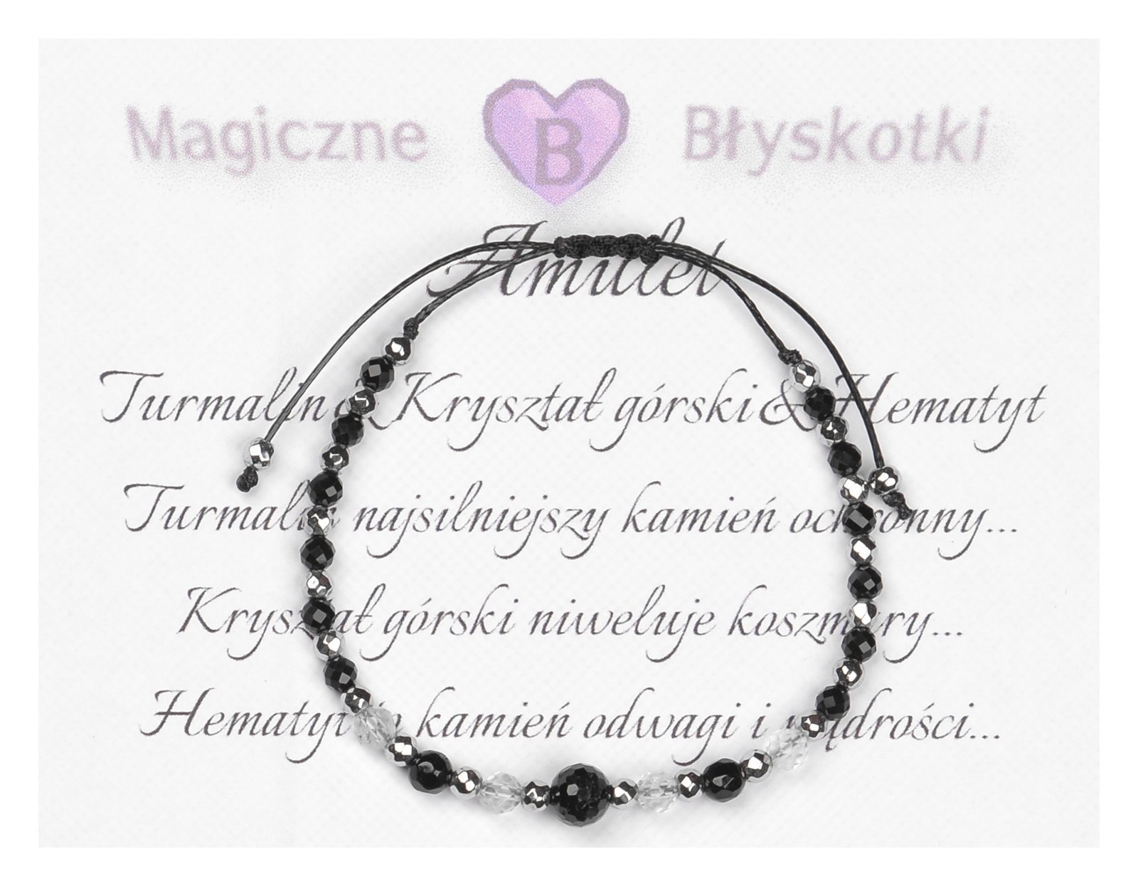 Bransoletka z kamieniami: TURMALIN + KRYSZTAŁ GÓRSKI + HEMATYT.