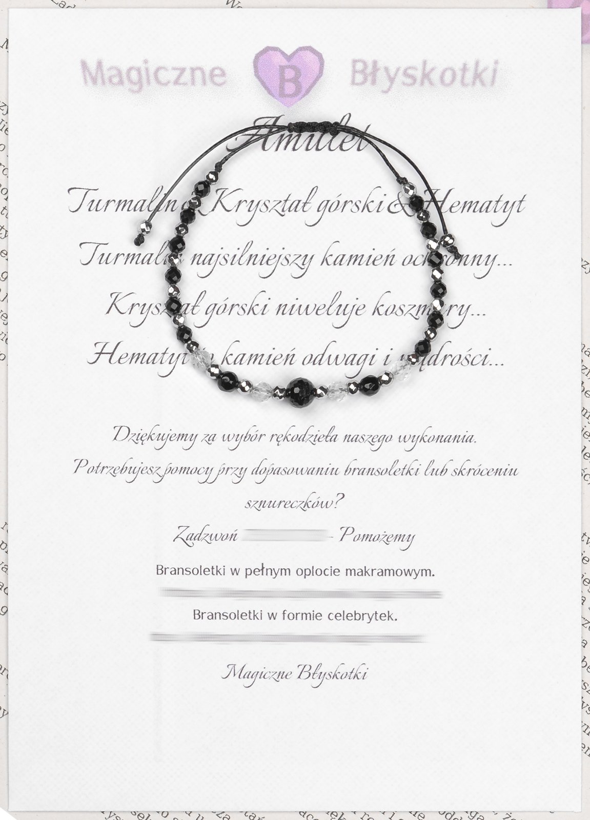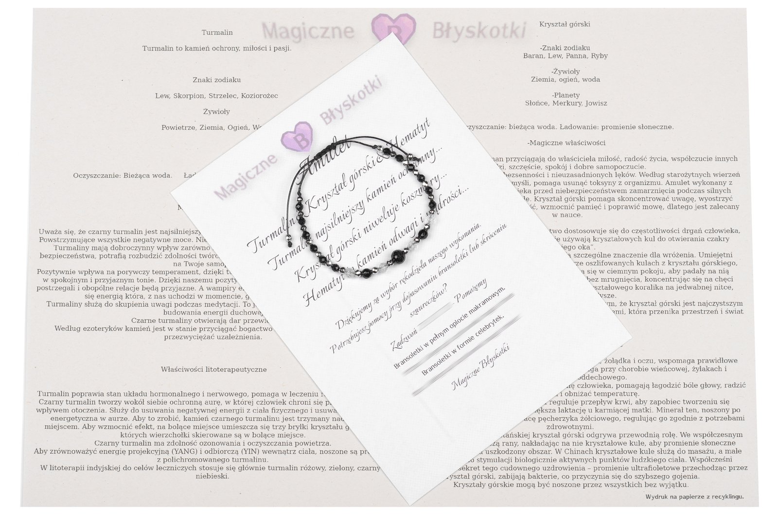 W komplecie otrzymujesz: bransoletkę, opis kamieni i kopertę jako opakowanie, co czyni ten zestaw unikalnym upominkiem.