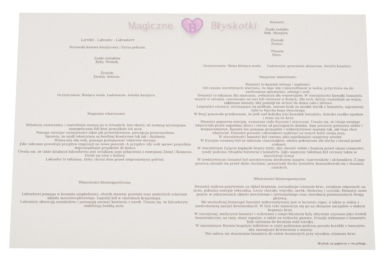 W komplecie otrzymujesz: bransoletkę, opis kamieni i kopertę jako opakowanie, co czyni ten zestaw unikalnym upominkiem.