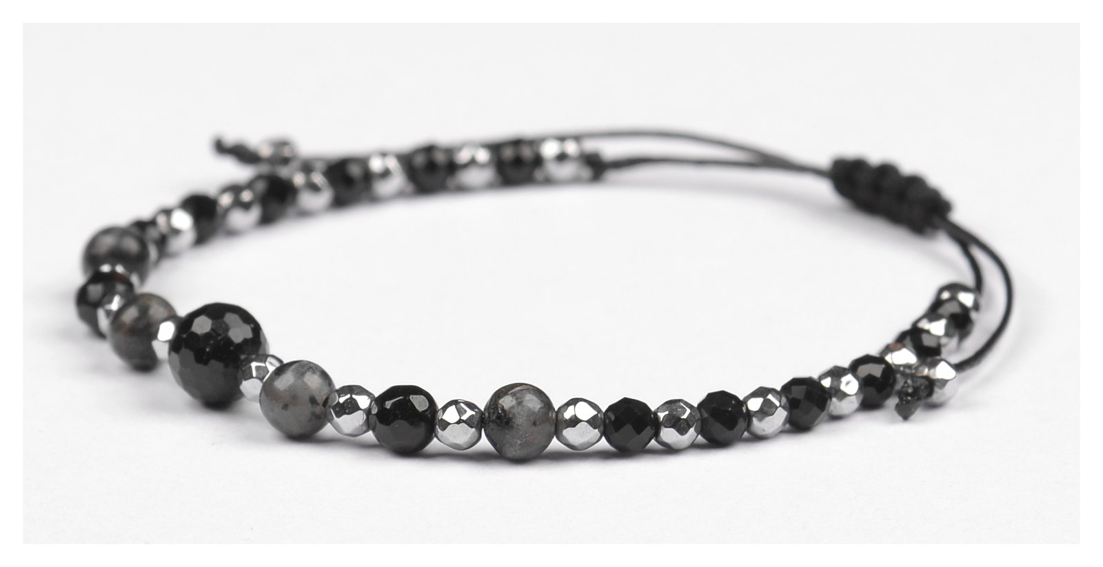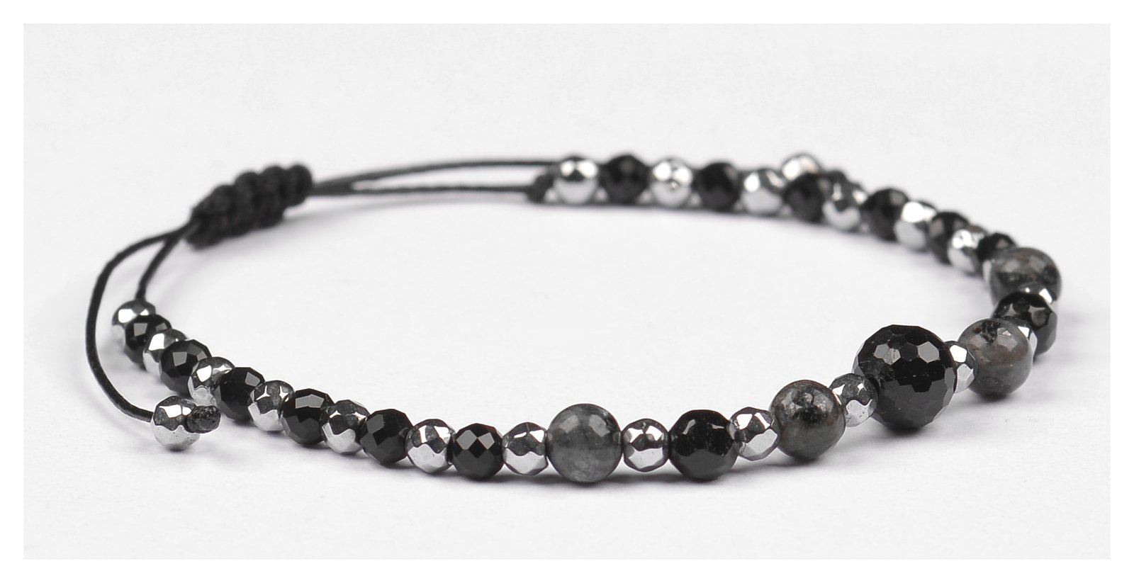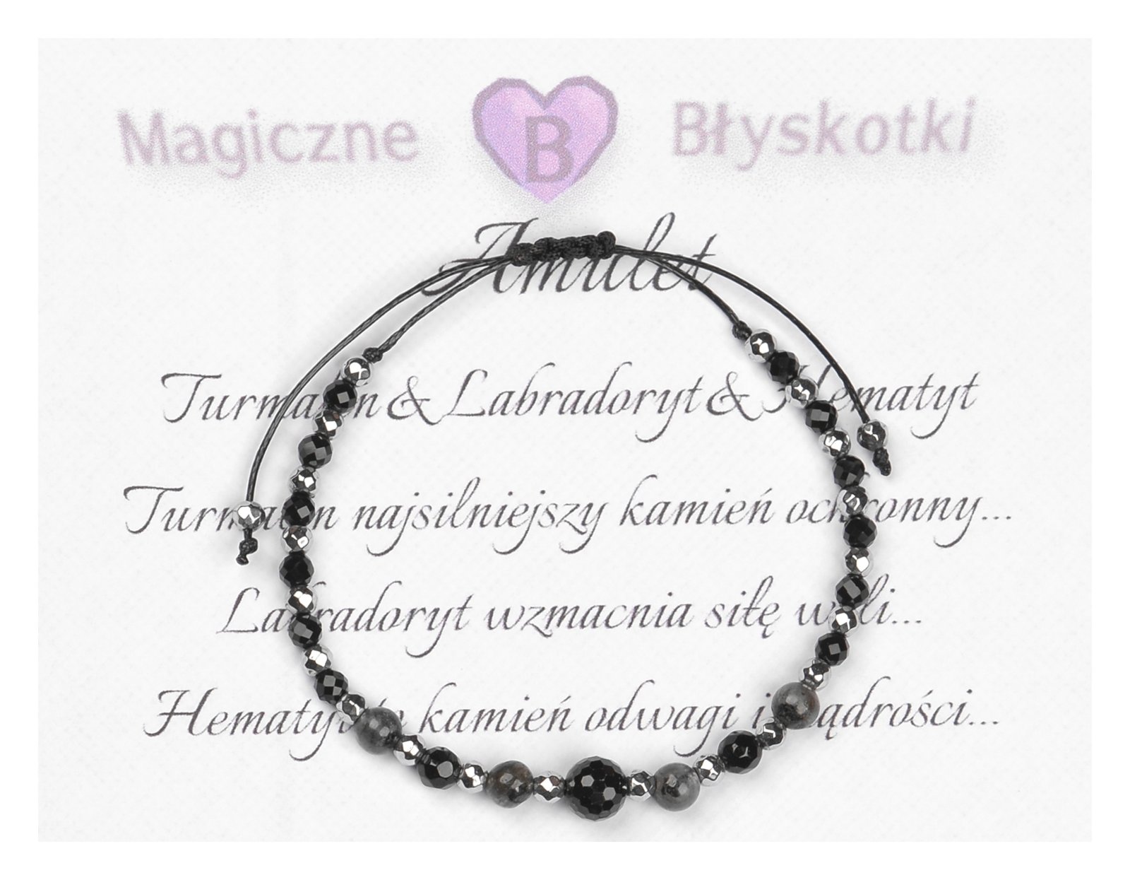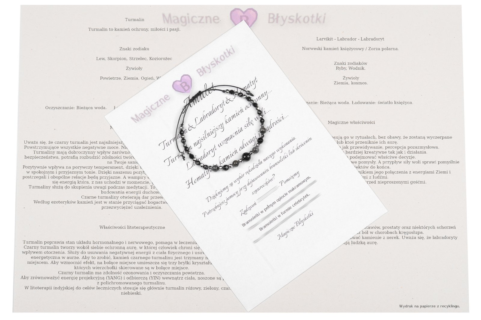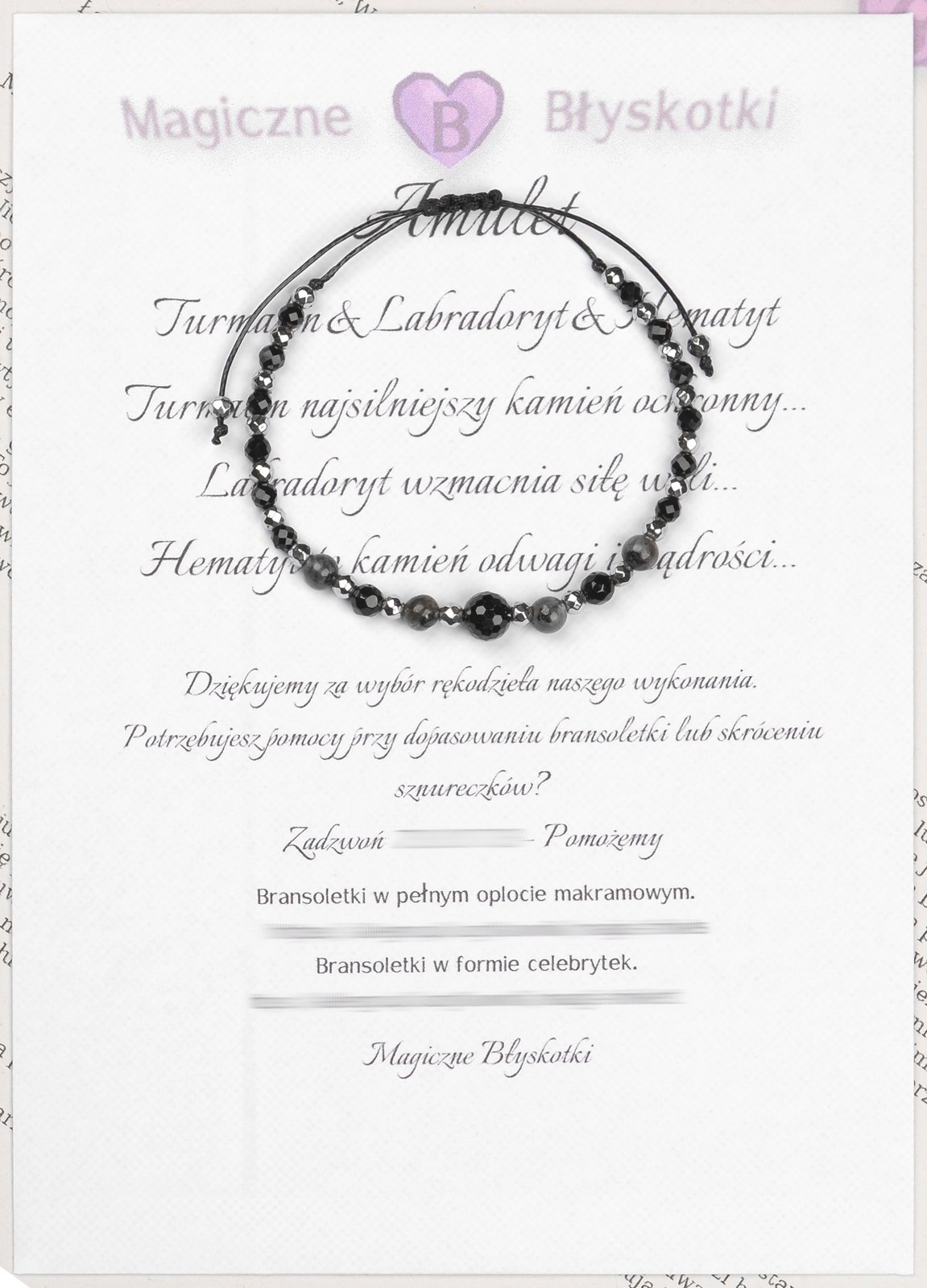 Bransoletka z kamieniami: TURMALIN + LABRADORYT + HEMATYT.