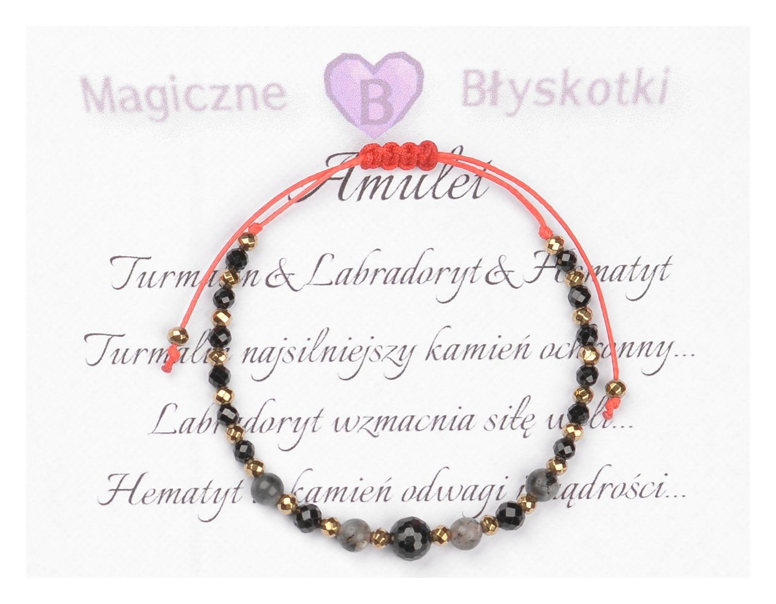 Bransoletka z kamieniami: TURMALIN + LABRADORYT + HEMATYT.