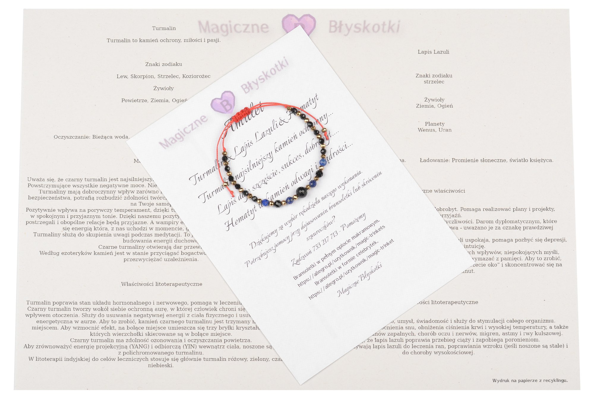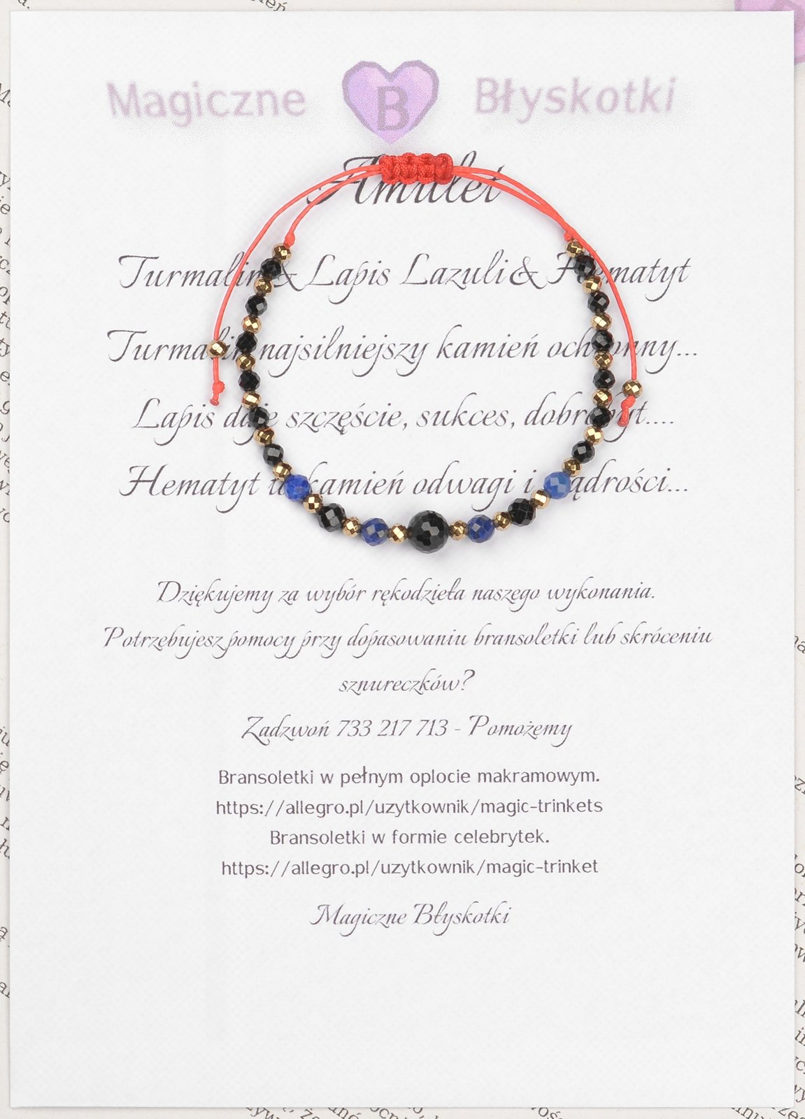 Bransoletka z kamieniami: TURMALIN + LAPIS LAZULI + HEMATYT.
